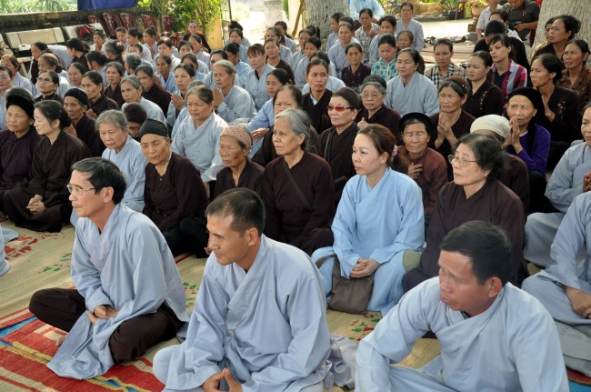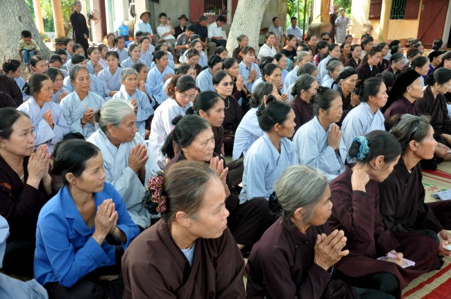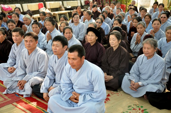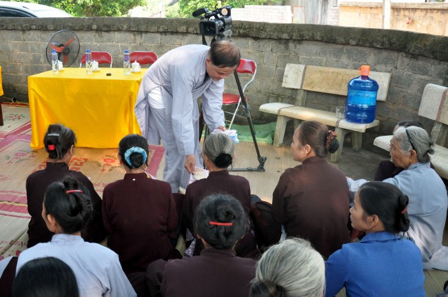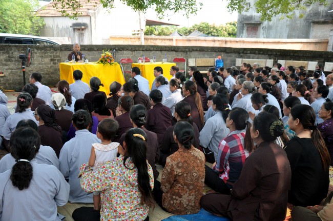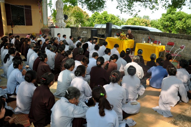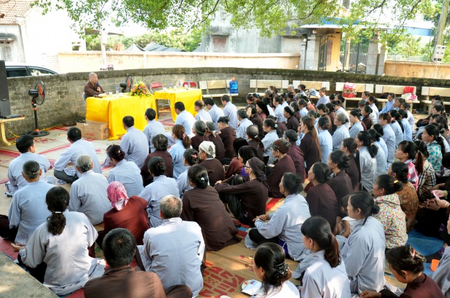 In the afternoon, Senior Ven. visited and\r\ntalked with Buddhists who were currently cultivating at Linh Son Pagoda, Tu Mot\r\nvillage, Quy Son commune, Luc Ngan district, Bac Giang province. Although there\r\nwas not the abbot, the Buddhists have united together and often came to the\r\npagoda to chant and pray Buddha. In the talk, the Ven. praised the\r\ncultivating spirit of Buddhists and advised people try to keep the faith, learn\r\nDharma, and practice the Buddhas teachings, eat vegetarian, pray Buddha ,\r\navoid evil things, do good work, and keep clean mind to have the happy life and\r\nnext generation can live in good world.