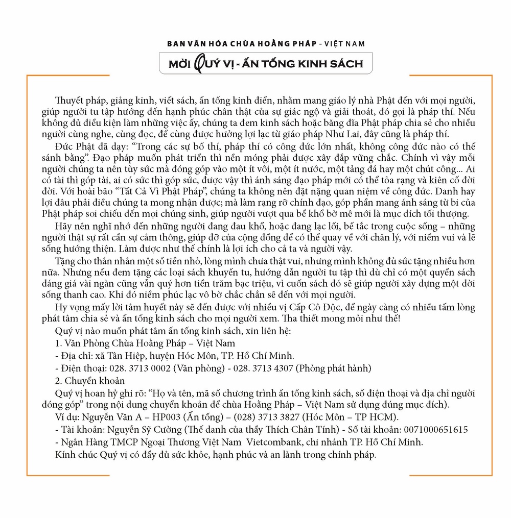 Ấn Phẩm Chùa Hoằng Pháp Bài Học Nhân Quả Tác giả: Thích Chân Tính Bài Học Nhân Quả Facebook Google Tweet Sách cùng thể loại Vua Pasenadi Chùa Hoằng Pháp Lời Phật dạy trong kinh A Hàm - Tập I Chùa Hoằng Pháp Hoa Tâm Bừng Nở Nhiều tác giả Tặng phẩm xuân 2025 Thích Chân Tính Tặng Phẩm Xuân 2024 Thích Chân Tính Giới thiệu ấn phẩm mới: Lịch bàn 2023 Thích Chân Tính Xem tất cả