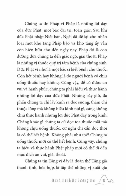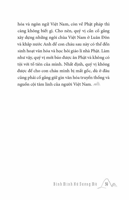 Sách HT. Thích Chân Tính Bình Minh Xứ Sương Mù Tác giả: Thích Chân Tính Mục lục Lời tựa Bình Minh Xứ Sương Mù Chính Đạo Cao Nguyên Thánh Địa Dấu Ấn Hoằng Pháp Tại Mĩ Đường Về Cội Giác Hoằng Pháp Tại New Zealand Và Úc Kể Chuyện Hoằng Pháp Tại Mĩ Sắc Hoa Miền Bắc Tổn Thất Nơi Kết Nối Tin Yêu Pháp Thoại Ở Toronto Mong Ước Đời Người Vì Pháp Quên Bệnh Vững Tiến Mấy lời tâm huyết Xem thêm Bình Minh Xứ Sương Mù Facebook Google Tweet Xem tiếp Sách cùng thể loại Tết Nguyên Đán ở Việt Nam Thích Chân Tính Nhìn lại Thích Chân Tính Lời Nhắn Nhủ Thích Chân Tính Tịnh Độ Nhân Gian Thích Chân Tính Dân Hòa Nước Mạnh Thích Chân Tính Ở Đời Vui Đạo Thích Chân Tính Xem tất cả