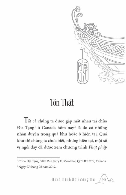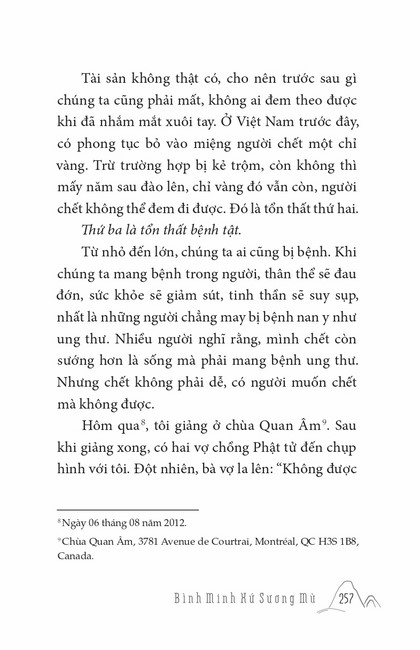 Sách HT. Thích Chân Tính Bình Minh Xứ Sương Mù Tác giả: Thích Chân Tính Mục lục Lời tựa Bình Minh Xứ Sương Mù Chính Đạo Cao Nguyên Thánh Địa Dấu Ấn Hoằng Pháp Tại Mĩ Đường Về Cội Giác Hoằng Pháp Tại New Zealand Và Úc Kể Chuyện Hoằng Pháp Tại Mĩ Sắc Hoa Miền Bắc Tổn Thất Nơi Kết Nối Tin Yêu Pháp Thoại Ở Toronto Mong Ước Đời Người Vì Pháp Quên Bệnh Vững Tiến Mấy lời tâm huyết Xem thêm Tổn Thất Facebook Google Tweet Xem tiếp Sách cùng thể loại Tết Nguyên Đán ở Việt Nam Thích Chân Tính Nhìn lại Thích Chân Tính Lời Nhắn Nhủ Thích Chân Tính Tịnh Độ Nhân Gian Thích Chân Tính Dân Hòa Nước Mạnh Thích Chân Tính Ở Đời Vui Đạo Thích Chân Tính Xem tất cả