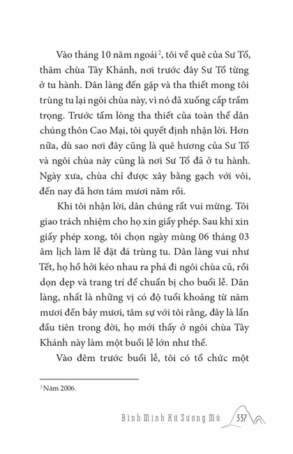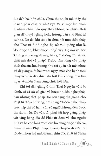 Sách HT. Thích Chân Tính Bình Minh Xứ Sương Mù Tác giả: Thích Chân Tính Mục lục Lời tựa Bình Minh Xứ Sương Mù Chính Đạo Cao Nguyên Thánh Địa Dấu Ấn Hoằng Pháp Tại Mĩ Đường Về Cội Giác Hoằng Pháp Tại New Zealand Và Úc Kể Chuyện Hoằng Pháp Tại Mĩ Sắc Hoa Miền Bắc Tổn Thất Nơi Kết Nối Tin Yêu Pháp Thoại Ở Toronto Mong Ước Đời Người Vì Pháp Quên Bệnh Vững Tiến Mấy lời tâm huyết Xem thêm Vì Pháp Quên Bệnh Facebook Google Tweet Xem tiếp Sách cùng thể loại Tết Nguyên Đán ở Việt Nam Thích Chân Tính Nhìn lại Thích Chân Tính Lời Nhắn Nhủ Thích Chân Tính Tịnh Độ Nhân Gian Thích Chân Tính Dân Hòa Nước Mạnh Thích Chân Tính Ở Đời Vui Đạo Thích Chân Tính Xem tất cả