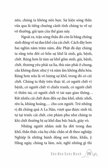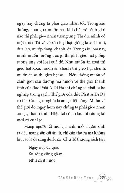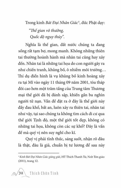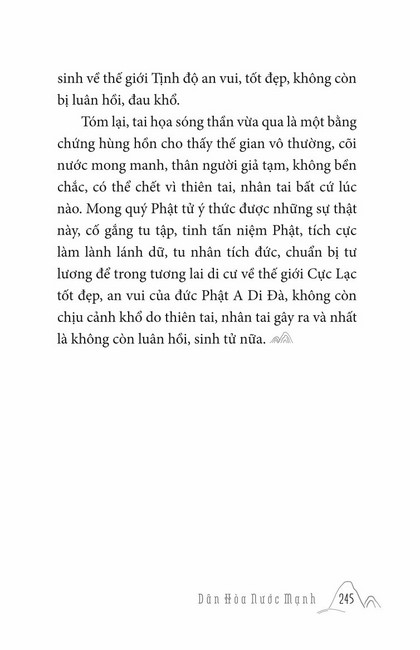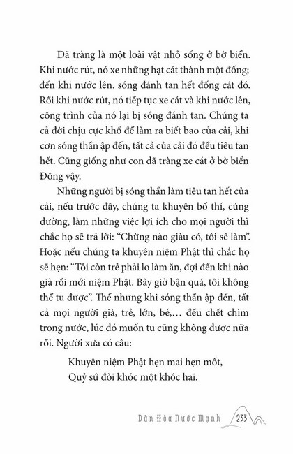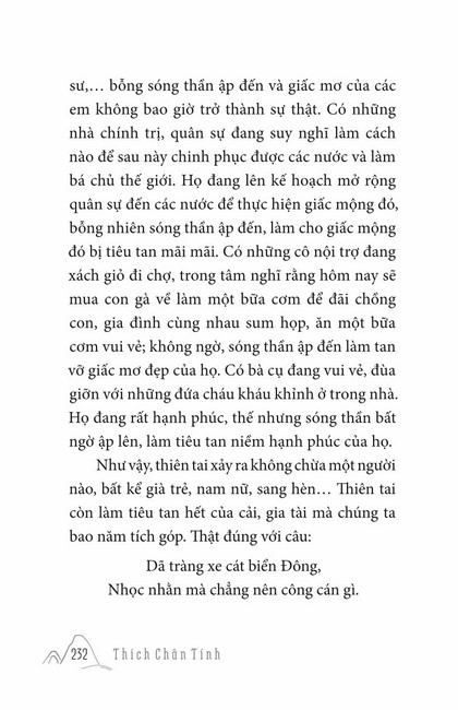Sách HT. Thích Chân Tính Dân Hòa Nước Mạnh Tác giả: Thích Chân Tính Mục lục Lời tựa Dân Hòa Nước Mạnh Mười Sáu Giấc Mơ Lạ Giai Cấp Bệnh Từ Miệng Vào Hòa Là Gốc An Vui Họa Phước Khôn Lường Quả Báo Sát Sinh Thiên Tai Tích Của Hay Tích Đức? Tiếng Chuông Cảnh Giác Tống Táng Đơn Giản Trâu Ơi! Chùa Là Trường Học Phật Pháp Mấy lời tâm huyết Xem thêm Thiên Tai Facebook Google Tweet Xem tiếp Sách cùng thể loại Tết Nguyên Đán ở Việt Nam Thích Chân Tính Nhìn lại Thích Chân Tính Lời Nhắn Nhủ Thích Chân Tính Tịnh Độ Nhân Gian Thích Chân Tính Ở Đời Vui Đạo Thích Chân Tính Hướng Đến Ánh Sáng Thích Chân Tính Xem tất cả