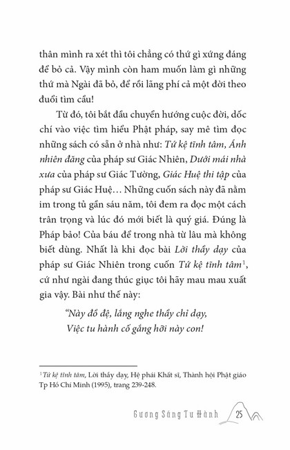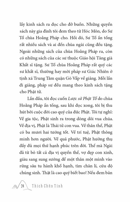 Sách HT. Thích Chân Tính Gương Sáng Tu Hành Tác giả: Thích Chân Tính Mục lục Lời tựa Phật Pháp Cứu Đời Tôi Ý Nghĩa Xuất Gia Cái Gì Là Của Ta Chuyển Hóa Khổ Đau Đúng Người Đúng Việc Học Và Tu Khất Thực Nuôi Cha Mẹ Niềm Tin Người Chăn Bò Người Được Ái Mộ Soi Đường Ta Đi Thọ Trì Tịnh Giới Tiến Trình An Cư – Tự Tứ – Vu Lan Tu Là Tiến Mấy lời tâm huyết Xem thêm Phật Pháp Cứu Đời Tôi Facebook Google Tweet Xem tiếp Sách cùng thể loại Tết Nguyên Đán ở Việt Nam Thích Chân Tính Nhìn lại Thích Chân Tính Lời Nhắn Nhủ Thích Chân Tính Tịnh Độ Nhân Gian Thích Chân Tính Dân Hòa Nước Mạnh Thích Chân Tính Ở Đời Vui Đạo Thích Chân Tính Xem tất cả