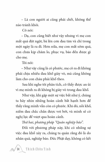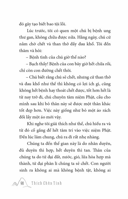 Sách HT. Thích Chân Tính Gương Sáng Tu Hành Tác giả: Thích Chân Tính Mục lục Lời tựa Phật Pháp Cứu Đời Tôi Ý Nghĩa Xuất Gia Cái Gì Là Của Ta Chuyển Hóa Khổ Đau Đúng Người Đúng Việc Học Và Tu Khất Thực Nuôi Cha Mẹ Niềm Tin Người Chăn Bò Người Được Ái Mộ Soi Đường Ta Đi Thọ Trì Tịnh Giới Tiến Trình An Cư – Tự Tứ – Vu Lan Tu Là Tiến Mấy lời tâm huyết Xem thêm Chuyển Hóa Khổ Đau Facebook Google Tweet Xem tiếp Sách cùng thể loại Tết Nguyên Đán ở Việt Nam Thích Chân Tính Nhìn lại Thích Chân Tính Lời Nhắn Nhủ Thích Chân Tính Tịnh Độ Nhân Gian Thích Chân Tính Dân Hòa Nước Mạnh Thích Chân Tính Ở Đời Vui Đạo Thích Chân Tính Xem tất cả