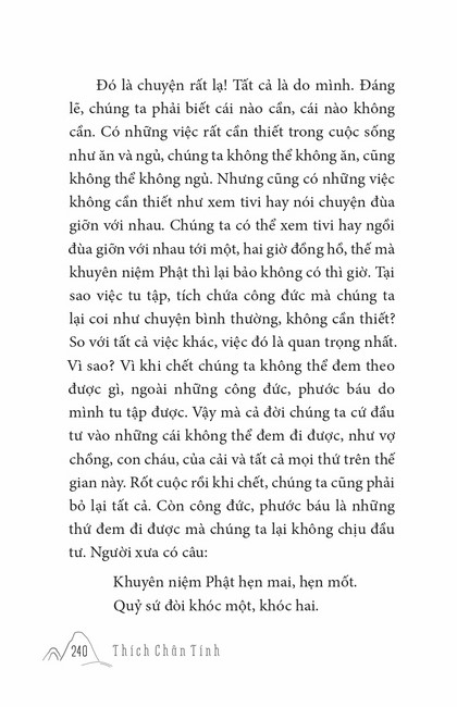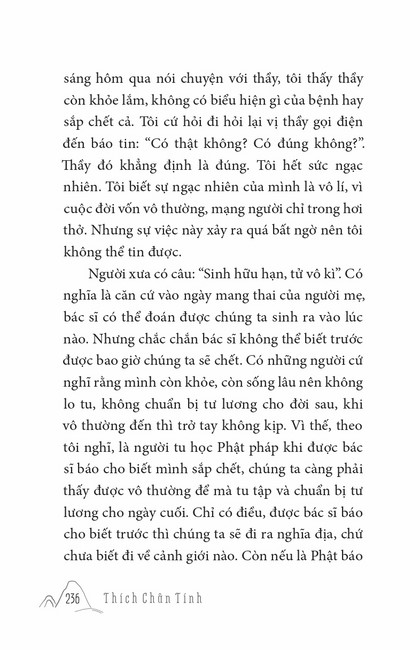 Sách HT. Thích Chân Tính Gương Sáng Tu Hành Tác giả: Thích Chân Tính Mục lục Lời tựa Phật Pháp Cứu Đời Tôi Ý Nghĩa Xuất Gia Cái Gì Là Của Ta Chuyển Hóa Khổ Đau Đúng Người Đúng Việc Học Và Tu Khất Thực Nuôi Cha Mẹ Niềm Tin Người Chăn Bò Người Được Ái Mộ Soi Đường Ta Đi Thọ Trì Tịnh Giới Tiến Trình An Cư – Tự Tứ – Vu Lan Tu Là Tiến Mấy lời tâm huyết Xem thêm Người Chăn Bò Facebook Google Tweet Xem tiếp Sách cùng thể loại Tết Nguyên Đán ở Việt Nam Thích Chân Tính Nhìn lại Thích Chân Tính Lời Nhắn Nhủ Thích Chân Tính Tịnh Độ Nhân Gian Thích Chân Tính Dân Hòa Nước Mạnh Thích Chân Tính Ở Đời Vui Đạo Thích Chân Tính Xem tất cả
