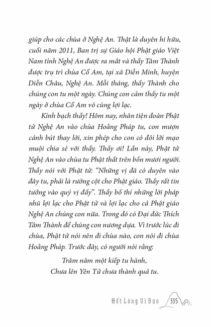 Sách HT. Thích Chân Tính Hết Lòng Vì Đạo Tác giả: Thích Chân Tính Mục lục Lời tựa Hết Lòng Vì Đạo Công Đức Pháp Thí Bốn Phương Pháp Cảm Hóa Lòng Người Cư Sĩ Cấp Cô Độc Cúng Dường Gió Thổi Trúc Lay Hoằng Pháp Lợi Sinh Hoằng Pháp Viên Nhạc Đạo Vào Đời Thầy Tài Trò Giỏi Nữ Hộ Pháp Tỳ Xá Khư Trách Nhiệm Của Ai? Tự Lợi, Lợi Tha Mấy lời tâm huyết Xem thêm Trách Nhiệm Của Ai? Facebook Google Tweet Xem tiếp Sách cùng thể loại Tết Nguyên Đán ở Việt Nam Thích Chân Tính Nhìn lại Thích Chân Tính Lời Nhắn Nhủ Thích Chân Tính Tịnh Độ Nhân Gian Thích Chân Tính Dân Hòa Nước Mạnh Thích Chân Tính Ở Đời Vui Đạo Thích Chân Tính Xem tất cả