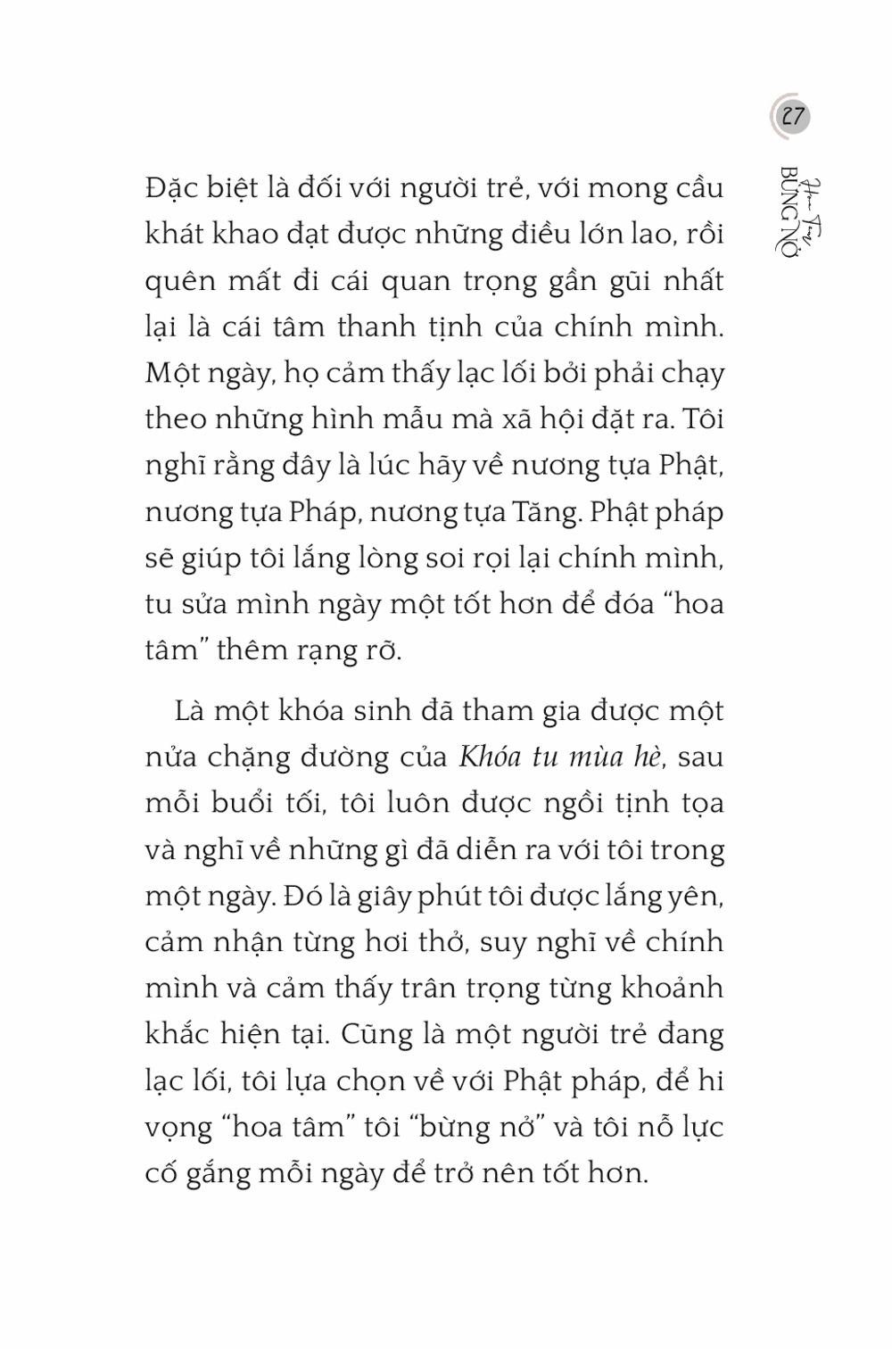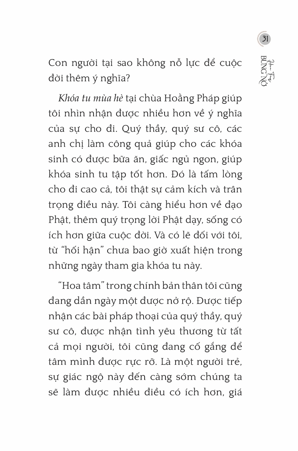 Ấn Phẩm Chùa Hoằng Pháp Hoa Tâm Bừng Nở Tác giả: Nhiều tác giả Download file Mục lục Mục lục Lời Tựa Sẽ còn dài những ngày nắng ấm Ta là một phần của thế giới này Tuổi trẻ trôi qua thật đáng giá Bình yên là gì? Sức mạnh của lời nói Thiền và tôi Thương vẫn phải xa Cuộc đời là những chuyến đi Gặp lại chính mình Nhân duyên cho những đóa hoa nở An nhiên qua tháng ngày Tiếng gọi từ muôn kiếp Nắng sẽ lên sau ngày giông bão Ý nghĩa của đau khổ trong đời sống Con thiêu thân Hoa tâm người xuất sĩ Cây xương rồng Healing Nhìn lại Chỉ một chút thôi Quán chiếu Vô tâm, vô cảm Người hiền sống trong tỉnh thức Hạnh phúc cuối con đường Đi tìm hạnh phúc Còn đó những kỉ niệm Sóng đêm Chiêm nghiệm Ẩn sĩ rớt bát Mấy lời tâm huyết Xem thêm Tuổi trẻ trôi qua thật đáng giá Facebook Google Tweet Xem tiếp Sách cùng thể loại Vua Pasenadi Chùa Hoằng Pháp Lời Phật dạy trong kinh A Hàm - Tập I Chùa Hoằng Pháp Tặng phẩm xuân 2025 Thích Chân Tính Tặng Phẩm Xuân 2024 Thích Chân Tính Giới thiệu ấn phẩm mới: Lịch bàn 2023 Thích Chân Tính Tặng phẩm xuân 2023 Thích Chân Tính Xem tất cả