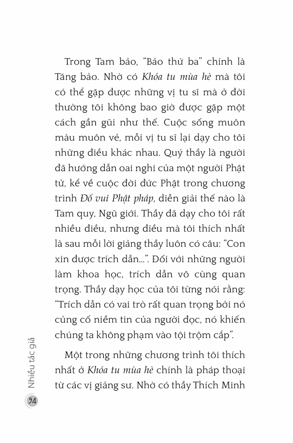 Ấn Phẩm Chùa Hoằng Pháp Hoa Tâm Bừng Nở Tác giả: Nhiều tác giả Download file Mục lục Mục lục Lời Tựa Sẽ còn dài những ngày nắng ấm Ta là một phần của thế giới này Tuổi trẻ trôi qua thật đáng giá Bình yên là gì? Sức mạnh của lời nói Thiền và tôi Thương vẫn phải xa Cuộc đời là những chuyến đi Gặp lại chính mình Nhân duyên cho những đóa hoa nở An nhiên qua tháng ngày Tiếng gọi từ muôn kiếp Nắng sẽ lên sau ngày giông bão Ý nghĩa của đau khổ trong đời sống Con thiêu thân Hoa tâm người xuất sĩ Cây xương rồng Healing Nhìn lại Chỉ một chút thôi Quán chiếu Vô tâm, vô cảm Người hiền sống trong tỉnh thức Hạnh phúc cuối con đường Đi tìm hạnh phúc Còn đó những kỉ niệm Sóng đêm Chiêm nghiệm Ẩn sĩ rớt bát Mấy lời tâm huyết Xem thêm Nhân duyên cho những đóa hoa nở Facebook Google Tweet Xem tiếp Sách cùng thể loại Vua Pasenadi Chùa Hoằng Pháp Lời Phật dạy trong kinh A Hàm - Tập I Chùa Hoằng Pháp Tặng phẩm xuân 2025 Thích Chân Tính Tặng Phẩm Xuân 2024 Thích Chân Tính Giới thiệu ấn phẩm mới: Lịch bàn 2023 Thích Chân Tính Tặng phẩm xuân 2023 Thích Chân Tính Xem tất cả
