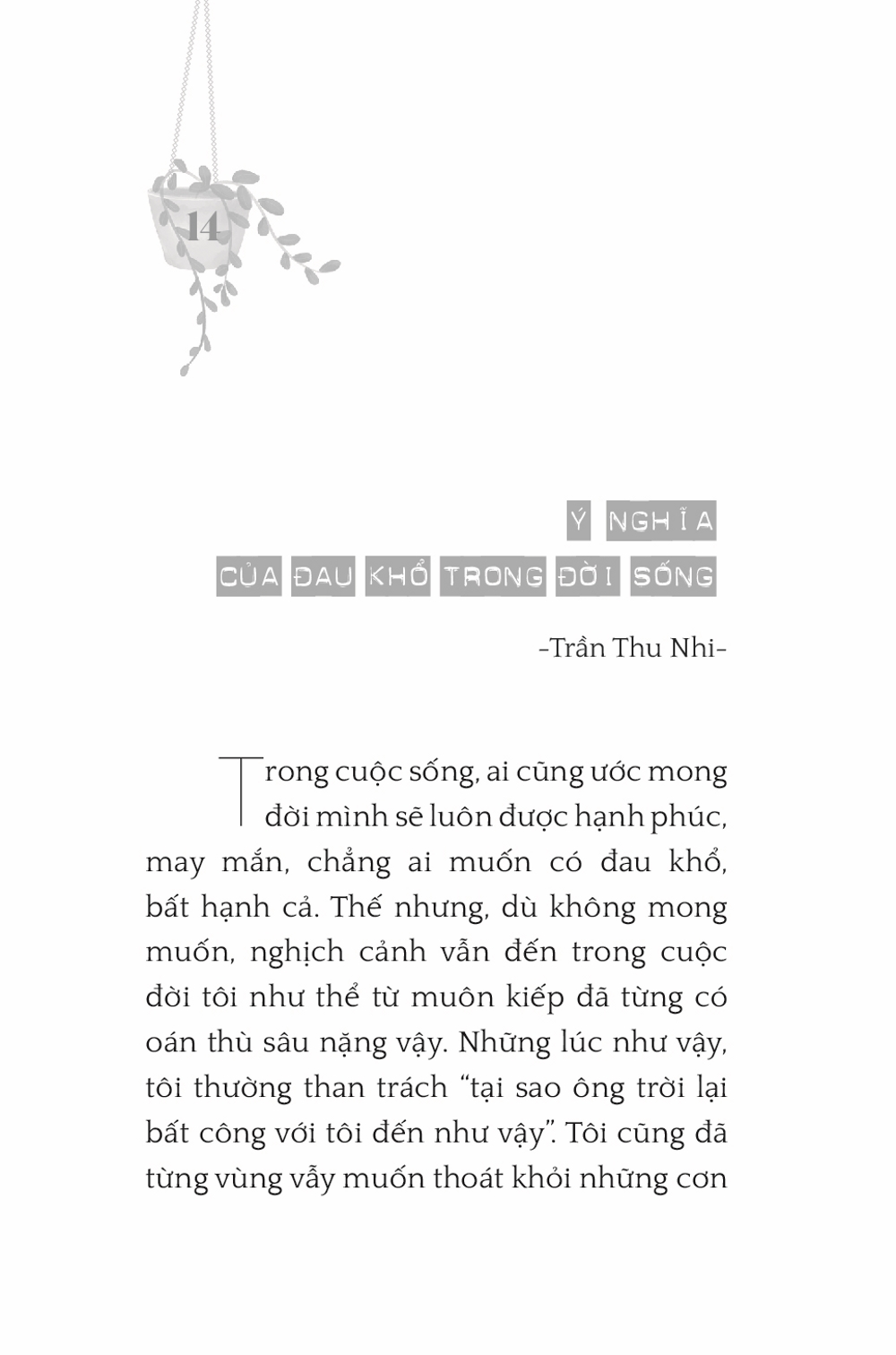 Ấn Phẩm Chùa Hoằng Pháp Hoa Tâm Bừng Nở Tác giả: Nhiều tác giả Download file Mục lục Mục lục Lời Tựa Sẽ còn dài những ngày nắng ấm Ta là một phần của thế giới này Tuổi trẻ trôi qua thật đáng giá Bình yên là gì? Sức mạnh của lời nói Thiền và tôi Thương vẫn phải xa Cuộc đời là những chuyến đi Gặp lại chính mình Nhân duyên cho những đóa hoa nở An nhiên qua tháng ngày Tiếng gọi từ muôn kiếp Nắng sẽ lên sau ngày giông bão Ý nghĩa của đau khổ trong đời sống Con thiêu thân Hoa tâm người xuất sĩ Cây xương rồng Healing Nhìn lại Chỉ một chút thôi Quán chiếu Vô tâm, vô cảm Người hiền sống trong tỉnh thức Hạnh phúc cuối con đường Đi tìm hạnh phúc Còn đó những kỉ niệm Sóng đêm Chiêm nghiệm Ẩn sĩ rớt bát Mấy lời tâm huyết Xem thêm Ý nghĩa của đau khổ trong đời sống Facebook Google Tweet Xem tiếp Sách cùng thể loại Vua Pasenadi Chùa Hoằng Pháp Lời Phật dạy trong kinh A Hàm - Tập I Chùa Hoằng Pháp Tặng phẩm xuân 2025 Thích Chân Tính Tặng Phẩm Xuân 2024 Thích Chân Tính Giới thiệu ấn phẩm mới: Lịch bàn 2023 Thích Chân Tính Tặng phẩm xuân 2023 Thích Chân Tính Xem tất cả
