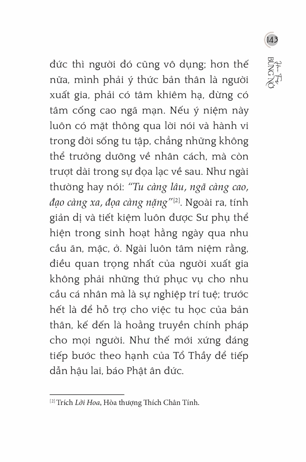 Ấn Phẩm Chùa Hoằng Pháp Hoa Tâm Bừng Nở Tác giả: Nhiều tác giả Download file Mục lục Mục lục Lời Tựa Sẽ còn dài những ngày nắng ấm Ta là một phần của thế giới này Tuổi trẻ trôi qua thật đáng giá Bình yên là gì? Sức mạnh của lời nói Thiền và tôi Thương vẫn phải xa Cuộc đời là những chuyến đi Gặp lại chính mình Nhân duyên cho những đóa hoa nở An nhiên qua tháng ngày Tiếng gọi từ muôn kiếp Nắng sẽ lên sau ngày giông bão Ý nghĩa của đau khổ trong đời sống Con thiêu thân Hoa tâm người xuất sĩ Cây xương rồng Healing Nhìn lại Chỉ một chút thôi Quán chiếu Vô tâm, vô cảm Người hiền sống trong tỉnh thức Hạnh phúc cuối con đường Đi tìm hạnh phúc Còn đó những kỉ niệm Sóng đêm Chiêm nghiệm Ẩn sĩ rớt bát Mấy lời tâm huyết Xem thêm Hoa tâm người xuất sĩ Facebook Google Tweet Xem tiếp Sách cùng thể loại Vua Pasenadi Chùa Hoằng Pháp Lời Phật dạy trong kinh A Hàm - Tập I Chùa Hoằng Pháp Tặng phẩm xuân 2025 Thích Chân Tính Tặng Phẩm Xuân 2024 Thích Chân Tính Giới thiệu ấn phẩm mới: Lịch bàn 2023 Thích Chân Tính Tặng phẩm xuân 2023 Thích Chân Tính Xem tất cả