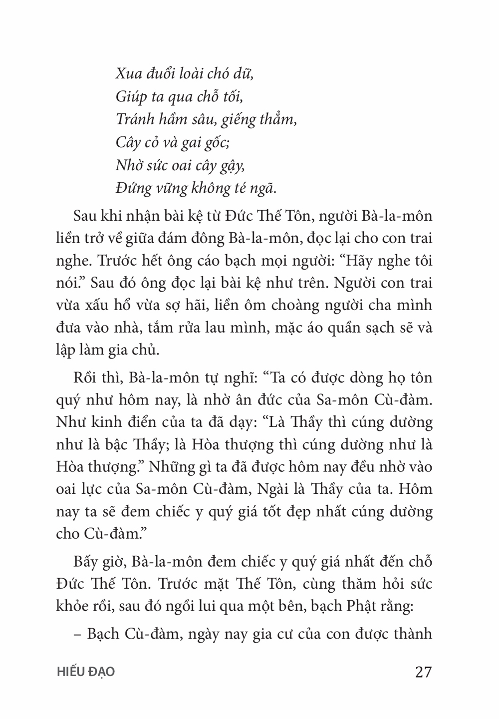 Ấn Phẩm Chùa Hoằng Pháp Lời Phật dạy trong kinh A Hàm - Tập I Tác giả: Chùa Hoằng Pháp Download file Mục lục Lời Tựa Mục Lục CHƯƠNG 1: HIẾU ĐẠO CHƯƠNG 2: GIỚI LUẬT CHƯƠNG 3: THIỀN ĐỊNH CHƯƠNG 4: TRÍ TUỆ CHƯƠNG 5: HẢI ĐẢO TỰ THÂN CHƯƠNG 6: BỐ THÍ – CÚNG DƯỜNG CHƯƠNG 7: NỮ GIỚI CHƯƠNG 8: VÔ THƯỜNG – KHỔ – VÔ NGÃ CHƯƠNG 9: TỨ ĐẾ CHƯƠNG 10: NGŨ DỤC CHƯƠNG 11: CÁC HẠNG NGƯỜI CHƯƠNG 12: TỪ, BI, HỶ, XẢ CHƯƠNG 13: THÂN NGHIỆP CHƯƠNG 14: KHẨU NGHIỆP CHƯƠNG 15: Ý NGHIỆP CHƯƠNG 16: CHƯỚNG NGẠI CHƯƠNG 17: TỲ-KHEO Mấy lời tâm huyết Xem thêm CHƯƠNG 1: HIẾU ĐẠO Facebook Google Tweet Xem tiếp Sách cùng thể loại Vua Pasenadi Chùa Hoằng Pháp Hoa Tâm Bừng Nở Nhiều tác giả Tặng phẩm xuân 2025 Thích Chân Tính Tặng Phẩm Xuân 2024 Thích Chân Tính Giới thiệu ấn phẩm mới: Lịch bàn 2023 Thích Chân Tính Tặng phẩm xuân 2023 Thích Chân Tính Xem tất cả