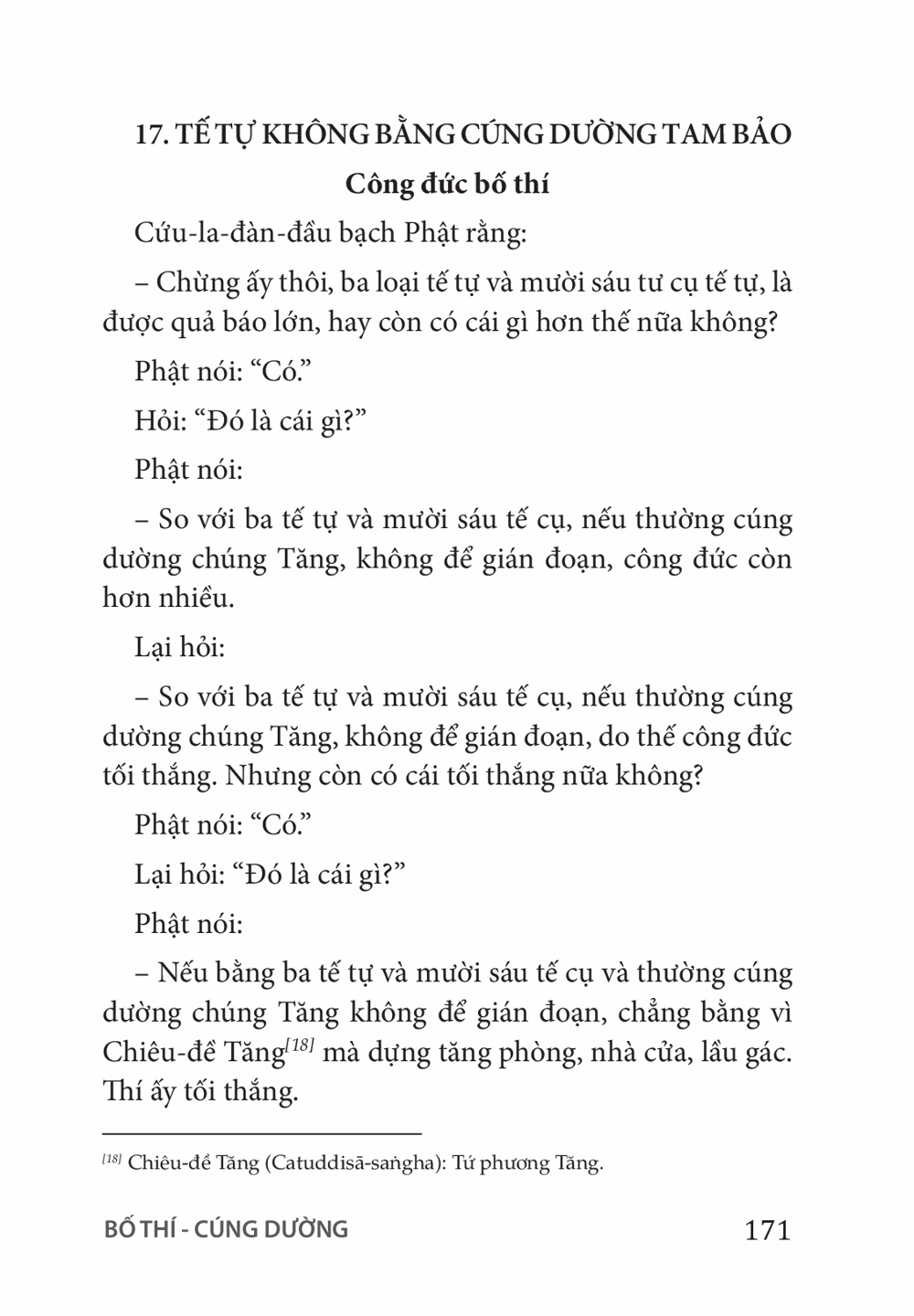 Ấn Phẩm Chùa Hoằng Pháp Lời Phật dạy trong kinh A Hàm - Tập I Tác giả: Chùa Hoằng Pháp Download file Mục lục Lời Tựa Mục Lục CHƯƠNG 1: HIẾU ĐẠO CHƯƠNG 2: GIỚI LUẬT CHƯƠNG 3: THIỀN ĐỊNH CHƯƠNG 4: TRÍ TUỆ CHƯƠNG 5: HẢI ĐẢO TỰ THÂN CHƯƠNG 6: BỐ THÍ – CÚNG DƯỜNG CHƯƠNG 7: NỮ GIỚI CHƯƠNG 8: VÔ THƯỜNG – KHỔ – VÔ NGÃ CHƯƠNG 9: TỨ ĐẾ CHƯƠNG 10: NGŨ DỤC CHƯƠNG 11: CÁC HẠNG NGƯỜI CHƯƠNG 12: TỪ, BI, HỶ, XẢ CHƯƠNG 13: THÂN NGHIỆP CHƯƠNG 14: KHẨU NGHIỆP CHƯƠNG 15: Ý NGHIỆP CHƯƠNG 16: CHƯỚNG NGẠI CHƯƠNG 17: TỲ-KHEO Mấy lời tâm huyết Xem thêm CHƯƠNG 6: BỐ THÍ – CÚNG DƯỜNG Facebook Google Tweet Xem tiếp Sách cùng thể loại Vua Pasenadi Chùa Hoằng Pháp Hoa Tâm Bừng Nở Nhiều tác giả Tặng phẩm xuân 2025 Thích Chân Tính Tặng Phẩm Xuân 2024 Thích Chân Tính Giới thiệu ấn phẩm mới: Lịch bàn 2023 Thích Chân Tính Tặng phẩm xuân 2023 Thích Chân Tính Xem tất cả