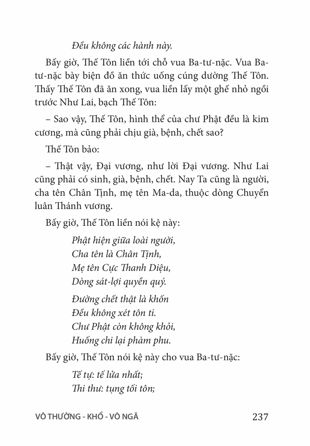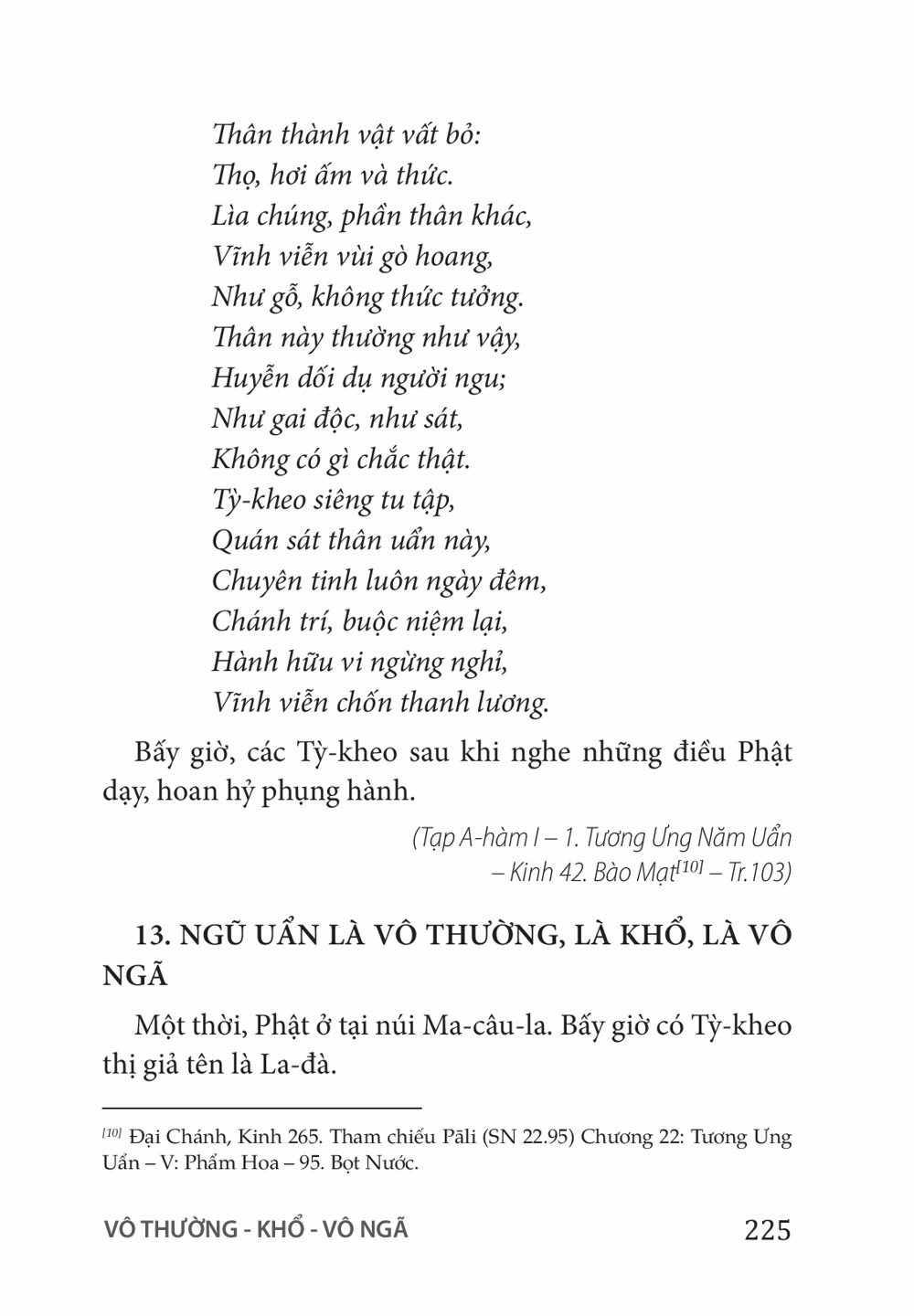 Ấn Phẩm Chùa Hoằng Pháp Lời Phật dạy trong kinh A Hàm - Tập I Tác giả: Chùa Hoằng Pháp Download file Mục lục Lời Tựa Mục Lục CHƯƠNG 1: HIẾU ĐẠO CHƯƠNG 2: GIỚI LUẬT CHƯƠNG 3: THIỀN ĐỊNH CHƯƠNG 4: TRÍ TUỆ CHƯƠNG 5: HẢI ĐẢO TỰ THÂN CHƯƠNG 6: BỐ THÍ – CÚNG DƯỜNG CHƯƠNG 7: NỮ GIỚI CHƯƠNG 8: VÔ THƯỜNG – KHỔ – VÔ NGÃ CHƯƠNG 9: TỨ ĐẾ CHƯƠNG 10: NGŨ DỤC CHƯƠNG 11: CÁC HẠNG NGƯỜI CHƯƠNG 12: TỪ, BI, HỶ, XẢ CHƯƠNG 13: THÂN NGHIỆP CHƯƠNG 14: KHẨU NGHIỆP CHƯƠNG 15: Ý NGHIỆP CHƯƠNG 16: CHƯỚNG NGẠI CHƯƠNG 17: TỲ-KHEO Mấy lời tâm huyết Xem thêm CHƯƠNG 8: VÔ THƯỜNG – KHỔ – VÔ NGÃ Facebook Google Tweet Xem tiếp Sách cùng thể loại Vua Pasenadi Chùa Hoằng Pháp Hoa Tâm Bừng Nở Nhiều tác giả Tặng phẩm xuân 2025 Thích Chân Tính Tặng Phẩm Xuân 2024 Thích Chân Tính Giới thiệu ấn phẩm mới: Lịch bàn 2023 Thích Chân Tính Tặng phẩm xuân 2023 Thích Chân Tính Xem tất cả