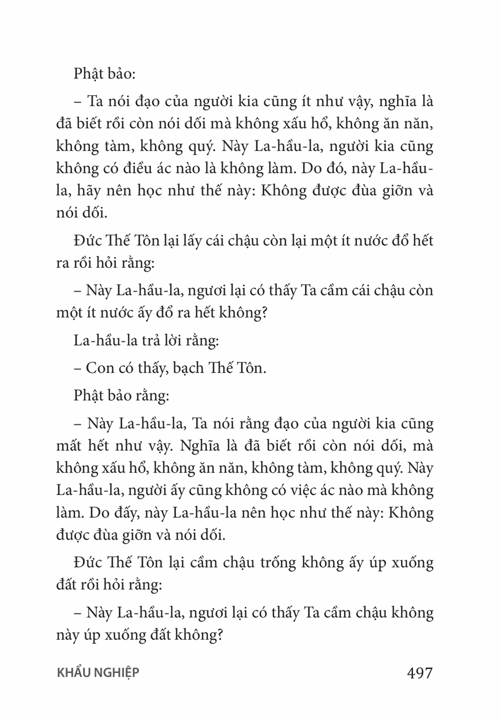 Ấn Phẩm Chùa Hoằng Pháp Lời Phật dạy trong kinh A Hàm - Tập I Tác giả: Chùa Hoằng Pháp Download file Mục lục Lời Tựa Mục Lục CHƯƠNG 1: HIẾU ĐẠO CHƯƠNG 2: GIỚI LUẬT CHƯƠNG 3: THIỀN ĐỊNH CHƯƠNG 4: TRÍ TUỆ CHƯƠNG 5: HẢI ĐẢO TỰ THÂN CHƯƠNG 6: BỐ THÍ – CÚNG DƯỜNG CHƯƠNG 7: NỮ GIỚI CHƯƠNG 8: VÔ THƯỜNG – KHỔ – VÔ NGÃ CHƯƠNG 9: TỨ ĐẾ CHƯƠNG 10: NGŨ DỤC CHƯƠNG 11: CÁC HẠNG NGƯỜI CHƯƠNG 12: TỪ, BI, HỶ, XẢ CHƯƠNG 13: THÂN NGHIỆP CHƯƠNG 14: KHẨU NGHIỆP CHƯƠNG 15: Ý NGHIỆP CHƯƠNG 16: CHƯỚNG NGẠI CHƯƠNG 17: TỲ-KHEO Mấy lời tâm huyết Xem thêm CHƯƠNG 14: KHẨU NGHIỆP Facebook Google Tweet Xem tiếp Sách cùng thể loại Vua Pasenadi Chùa Hoằng Pháp Hoa Tâm Bừng Nở Nhiều tác giả Tặng phẩm xuân 2025 Thích Chân Tính Tặng Phẩm Xuân 2024 Thích Chân Tính Giới thiệu ấn phẩm mới: Lịch bàn 2023 Thích Chân Tính Tặng phẩm xuân 2023 Thích Chân Tính Xem tất cả
