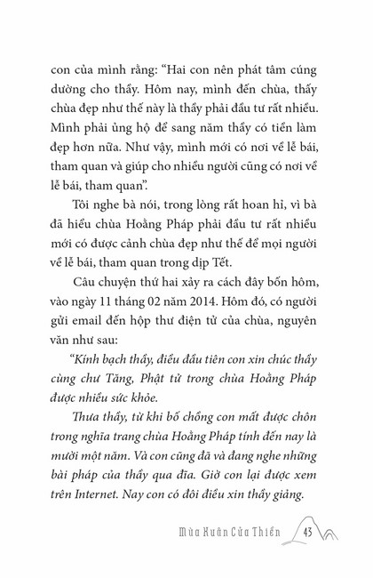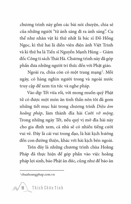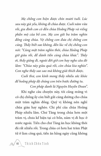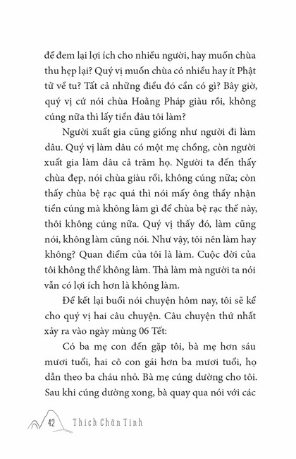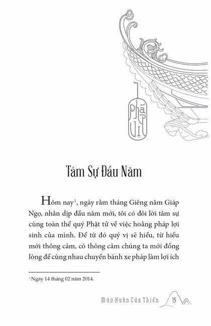 Sách HT. Thích Chân Tính Mùa Xuân Cửa Thiền Tác giả: Thích Chân Tính Mục lục Lời tựa Tâm Sự Đầu Năm Ai Cũng Là Phật Khó Vẫn Làm Được Lời Nguyện Đầu Năm Mục Đích Đến Chùa Nhìn Lại Nụ Cười Di Lặc Tết Nguyên Đán Ở Việt Nam Thất Thánh Tài Vui Buồn Mùa Xuân Khéo Biết Tâm Mình Người Biết Ơn Người Phật Tử Cần Biết Người Phật Tử Tại Gia Mấy lời tâm huyết Xem thêm Tâm Sự Đầu Năm Facebook Google Tweet Xem tiếp Sách cùng thể loại Tết Nguyên Đán ở Việt Nam Thích Chân Tính Nhìn lại Thích Chân Tính Lời Nhắn Nhủ Thích Chân Tính Tịnh Độ Nhân Gian Thích Chân Tính Dân Hòa Nước Mạnh Thích Chân Tính Ở Đời Vui Đạo Thích Chân Tính Xem tất cả