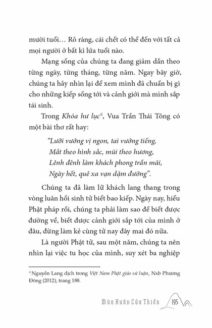 Sách HT. Thích Chân Tính Mùa Xuân Cửa Thiền Tác giả: Thích Chân Tính Mục lục Lời tựa Tâm Sự Đầu Năm Ai Cũng Là Phật Khó Vẫn Làm Được Lời Nguyện Đầu Năm Mục Đích Đến Chùa Nhìn Lại Nụ Cười Di Lặc Tết Nguyên Đán Ở Việt Nam Thất Thánh Tài Vui Buồn Mùa Xuân Khéo Biết Tâm Mình Người Biết Ơn Người Phật Tử Cần Biết Người Phật Tử Tại Gia Mấy lời tâm huyết Xem thêm Nhìn Lại Facebook Google Tweet Xem tiếp Sách cùng thể loại Tết Nguyên Đán ở Việt Nam Thích Chân Tính Nhìn lại Thích Chân Tính Lời Nhắn Nhủ Thích Chân Tính Tịnh Độ Nhân Gian Thích Chân Tính Dân Hòa Nước Mạnh Thích Chân Tính Ở Đời Vui Đạo Thích Chân Tính Xem tất cả