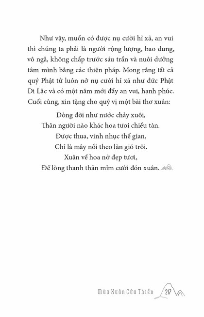 Sách HT. Thích Chân Tính Mùa Xuân Cửa Thiền Tác giả: Thích Chân Tính Mục lục Lời tựa Tâm Sự Đầu Năm Ai Cũng Là Phật Khó Vẫn Làm Được Lời Nguyện Đầu Năm Mục Đích Đến Chùa Nhìn Lại Nụ Cười Di Lặc Tết Nguyên Đán Ở Việt Nam Thất Thánh Tài Vui Buồn Mùa Xuân Khéo Biết Tâm Mình Người Biết Ơn Người Phật Tử Cần Biết Người Phật Tử Tại Gia Mấy lời tâm huyết Xem thêm Nụ Cười Di Lặc Facebook Google Tweet Xem tiếp Sách cùng thể loại Tết Nguyên Đán ở Việt Nam Thích Chân Tính Nhìn lại Thích Chân Tính Lời Nhắn Nhủ Thích Chân Tính Tịnh Độ Nhân Gian Thích Chân Tính Dân Hòa Nước Mạnh Thích Chân Tính Ở Đời Vui Đạo Thích Chân Tính Xem tất cả