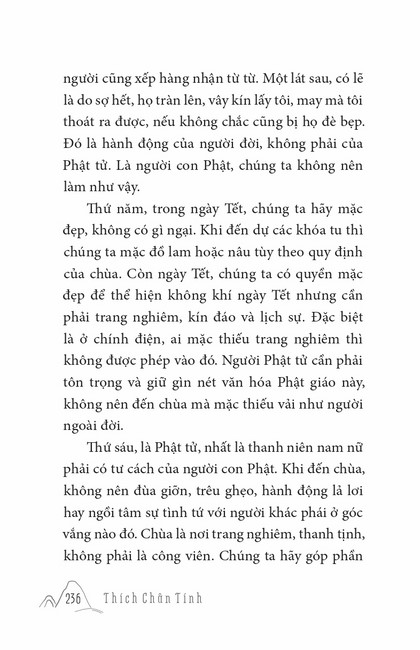 Sách HT. Thích Chân Tính Mùa Xuân Cửa Thiền Tác giả: Thích Chân Tính Mục lục Lời tựa Tâm Sự Đầu Năm Ai Cũng Là Phật Khó Vẫn Làm Được Lời Nguyện Đầu Năm Mục Đích Đến Chùa Nhìn Lại Nụ Cười Di Lặc Tết Nguyên Đán Ở Việt Nam Thất Thánh Tài Vui Buồn Mùa Xuân Khéo Biết Tâm Mình Người Biết Ơn Người Phật Tử Cần Biết Người Phật Tử Tại Gia Mấy lời tâm huyết Xem thêm Tết Nguyên Đán Ở Việt Nam Facebook Google Tweet Xem tiếp Sách cùng thể loại Tết Nguyên Đán ở Việt Nam Thích Chân Tính Nhìn lại Thích Chân Tính Lời Nhắn Nhủ Thích Chân Tính Tịnh Độ Nhân Gian Thích Chân Tính Dân Hòa Nước Mạnh Thích Chân Tính Ở Đời Vui Đạo Thích Chân Tính Xem tất cả