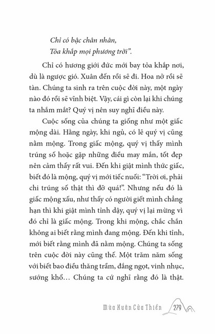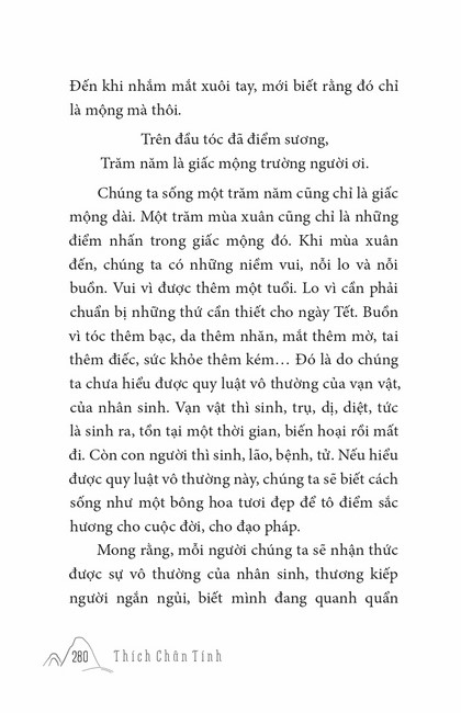 Sách HT. Thích Chân Tính Mùa Xuân Cửa Thiền Tác giả: Thích Chân Tính Mục lục Lời tựa Tâm Sự Đầu Năm Ai Cũng Là Phật Khó Vẫn Làm Được Lời Nguyện Đầu Năm Mục Đích Đến Chùa Nhìn Lại Nụ Cười Di Lặc Tết Nguyên Đán Ở Việt Nam Thất Thánh Tài Vui Buồn Mùa Xuân Khéo Biết Tâm Mình Người Biết Ơn Người Phật Tử Cần Biết Người Phật Tử Tại Gia Mấy lời tâm huyết Xem thêm Vui Buồn Mùa Xuân Facebook Google Tweet Xem tiếp Sách cùng thể loại Tết Nguyên Đán ở Việt Nam Thích Chân Tính Nhìn lại Thích Chân Tính Lời Nhắn Nhủ Thích Chân Tính Tịnh Độ Nhân Gian Thích Chân Tính Dân Hòa Nước Mạnh Thích Chân Tính Ở Đời Vui Đạo Thích Chân Tính Xem tất cả