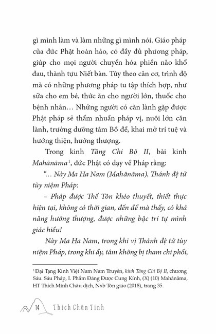 Sách HT. Thích Chân Tính Pháp Vị Vô Thượng Tác giả: Thích Chân Tính Mục lục Lời tựa Pháp Vị Vô Thượng Bậc Đại Nhân Cải Đạo Cao Thượng Con Phật Con Ma Gương Xưa Mừng Phật Đản Năm Báu Khó Tìm Nhớ Phật, Pháp, Tăng Như Voi Giữa Trận Tình Thương Cao Cả Vì Sao Quy Y Phật Vững Tin Tam Bảo Vô Tình Nói Pháp Quán Sát Âm Thanh Mấy lời tâm huyết Xem thêm Pháp Vị Vô Thượng Facebook Google Tweet Xem tiếp Sách cùng thể loại Tết Nguyên Đán ở Việt Nam Thích Chân Tính Nhìn lại Thích Chân Tính Lời Nhắn Nhủ Thích Chân Tính Tịnh Độ Nhân Gian Thích Chân Tính Dân Hòa Nước Mạnh Thích Chân Tính Ở Đời Vui Đạo Thích Chân Tính Xem tất cả