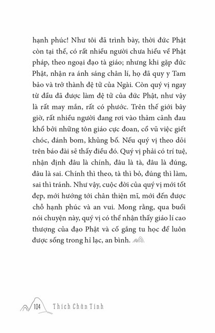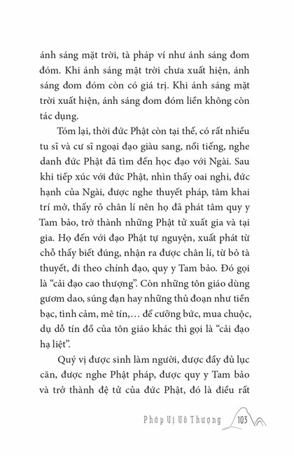 Sách HT. Thích Chân Tính Pháp Vị Vô Thượng Tác giả: Thích Chân Tính Mục lục Lời tựa Pháp Vị Vô Thượng Bậc Đại Nhân Cải Đạo Cao Thượng Con Phật Con Ma Gương Xưa Mừng Phật Đản Năm Báu Khó Tìm Nhớ Phật, Pháp, Tăng Như Voi Giữa Trận Tình Thương Cao Cả Vì Sao Quy Y Phật Vững Tin Tam Bảo Vô Tình Nói Pháp Quán Sát Âm Thanh Mấy lời tâm huyết Xem thêm Cải Đạo Cao Thượng Facebook Google Tweet Xem tiếp Sách cùng thể loại Tết Nguyên Đán ở Việt Nam Thích Chân Tính Nhìn lại Thích Chân Tính Lời Nhắn Nhủ Thích Chân Tính Tịnh Độ Nhân Gian Thích Chân Tính Dân Hòa Nước Mạnh Thích Chân Tính Ở Đời Vui Đạo Thích Chân Tính Xem tất cả
