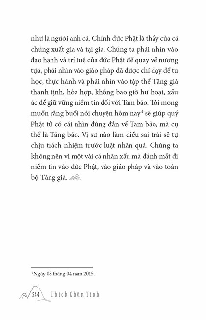 Sách HT. Thích Chân Tính Pháp Vị Vô Thượng Tác giả: Thích Chân Tính Mục lục Lời tựa Pháp Vị Vô Thượng Bậc Đại Nhân Cải Đạo Cao Thượng Con Phật Con Ma Gương Xưa Mừng Phật Đản Năm Báu Khó Tìm Nhớ Phật, Pháp, Tăng Như Voi Giữa Trận Tình Thương Cao Cả Vì Sao Quy Y Phật Vững Tin Tam Bảo Vô Tình Nói Pháp Quán Sát Âm Thanh Mấy lời tâm huyết Xem thêm Vững Tin Tam Bảo Facebook Google Tweet Xem tiếp Sách cùng thể loại Tết Nguyên Đán ở Việt Nam Thích Chân Tính Nhìn lại Thích Chân Tính Lời Nhắn Nhủ Thích Chân Tính Tịnh Độ Nhân Gian Thích Chân Tính Dân Hòa Nước Mạnh Thích Chân Tính Ở Đời Vui Đạo Thích Chân Tính Xem tất cả