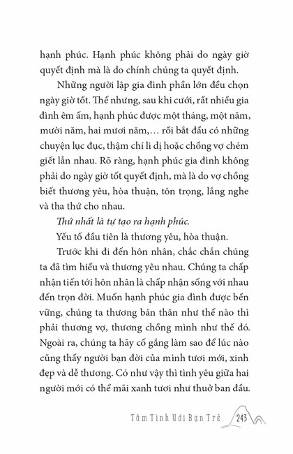 Sách HT. Thích Chân Tính Tâm Tình Với Bạn Trẻ Tác giả: Thích Chân Tính Mục lục Lời tựa Tâm Tình Với Bạn Trẻ Buông Xuống Đẹp Người Đẹp Nết Người Điêu Khắc Tượng Phước Duyên Tâm Sự Với Sinh Viên Tình Là Dây Oan Người Trẻ Cần Niệm Phật Mắt Thương Nhìn Đời Xuân Đời Đường Nào Ta Đi? Giả Đời Người Trọn Kiếp Con Người Mấy lời tâm huyết Xem thêm Xuân Đời Facebook Google Tweet Xem tiếp Sách cùng thể loại Tết Nguyên Đán ở Việt Nam Thích Chân Tính Nhìn lại Thích Chân Tính Lời Nhắn Nhủ Thích Chân Tính Tịnh Độ Nhân Gian Thích Chân Tính Dân Hòa Nước Mạnh Thích Chân Tính Ở Đời Vui Đạo Thích Chân Tính Xem tất cả