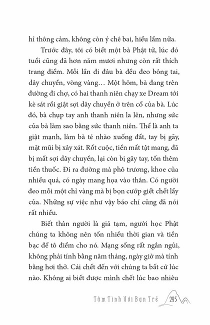 Sách HT. Thích Chân Tính Tâm Tình Với Bạn Trẻ Tác giả: Thích Chân Tính Mục lục Lời tựa Tâm Tình Với Bạn Trẻ Buông Xuống Đẹp Người Đẹp Nết Người Điêu Khắc Tượng Phước Duyên Tâm Sự Với Sinh Viên Tình Là Dây Oan Người Trẻ Cần Niệm Phật Mắt Thương Nhìn Đời Xuân Đời Đường Nào Ta Đi? Giả Đời Người Trọn Kiếp Con Người Mấy lời tâm huyết Xem thêm Giả Facebook Google Tweet Xem tiếp Sách cùng thể loại Tết Nguyên Đán ở Việt Nam Thích Chân Tính Nhìn lại Thích Chân Tính Lời Nhắn Nhủ Thích Chân Tính Tịnh Độ Nhân Gian Thích Chân Tính Dân Hòa Nước Mạnh Thích Chân Tính Ở Đời Vui Đạo Thích Chân Tính Xem tất cả