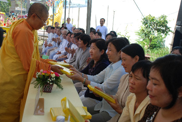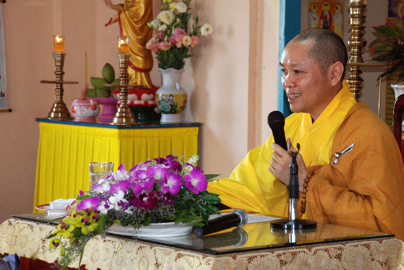 2 giờ 30 chiều cùng ngày, Thượng tọa đã đến chùa Phước Tường, Ấp 1, xã Phong Phú, Huyện Cầu Kè, tỉnh Trà Vinh thuyết giảng theo sự thỉnh cầu của thầy Trụ trì Thích Trí Minh. Đây là ngôi chùa ở vùng xa, dân cư thưa thớt, nhưng số lượng Phật tử về tu tập khá đông. Nhân dịp tại chùa cử hành đại lễ Phật Đản, Thượng tọa đã nói về tấm gương cao quý của đức Phật và khuyến tấn Phật tử noi theo học tập. Thượng tọa cũng tán thán thầy Trụ trì chùa Phước Tường tuy ở vùng sâu, cuộc sống nơi đây còn nhiều khó khăn về kinh tế, nhưng thầy đã xây dựng được cơ sở cho Phật tử về tu tập mỗi tháng, nhất là hôm nay thầy cũng vừa hoàn thành ngôi giảng đường mà Phật tử đang hiện diện nghe pháp. Kết thúc buổi giảng, Thượng tọa đã gởi tặng phần quà pháp bảo VCD “Vẫn còn hạnh phúc” cho toàn thể đạo tràng.