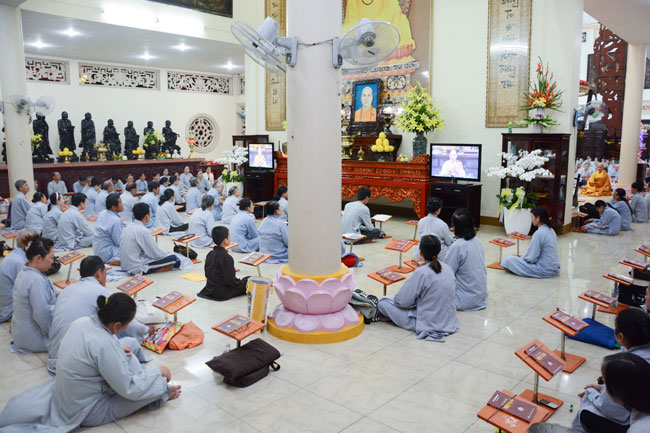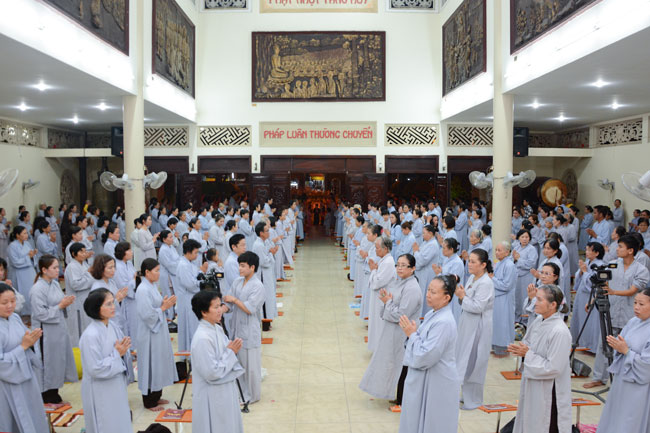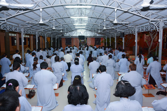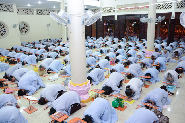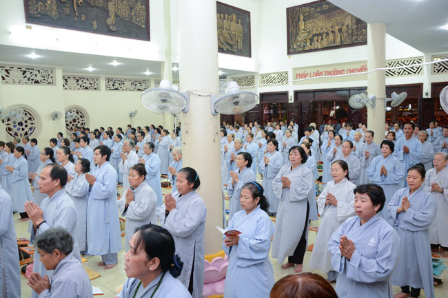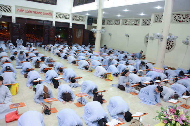 Sau thời pháp thoại là khóa lễ Hồng danh bảo sám, thiện nam tín nữ Phật tử đồng nhất tâm lễ lạy.