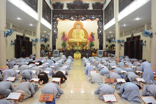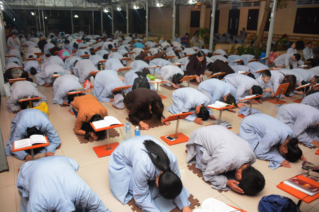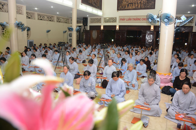 Kết thúc thời pháp thoại, đại chúng bước vào thời khóa tu tập như thường lệ.