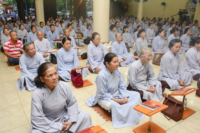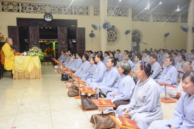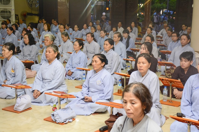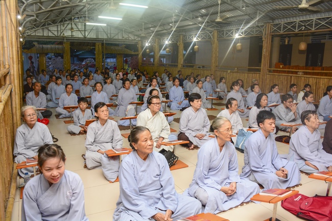 Trước khi bước vào khóa lễ, Đại đức Thích Tâm Phụng, chư Tăng chùa Hoằng Pháp đã có thời pháp thoại với đề tài “Sáu pháp tăng trưởng” gởi đến quý Phật tử.