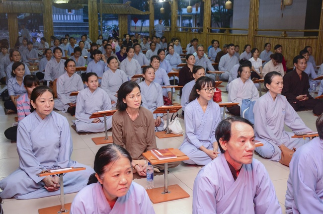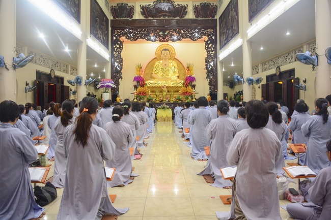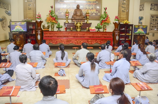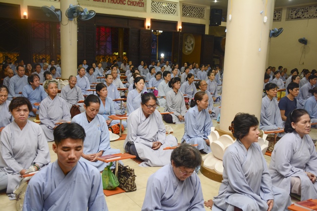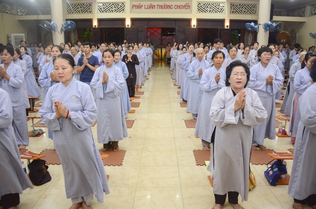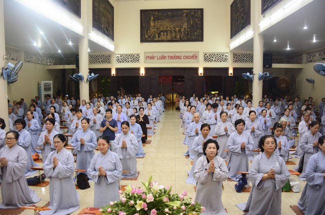 Tối ngày 25/05/2017 (nhằm 30/04 Đinh Dậu) quý thiện nam tín nữ trong và ngoài TP.HCM đã trở về chùa Hoằng Pháp tham dự khóa lễ sám hối định kỳ hàng tháng.