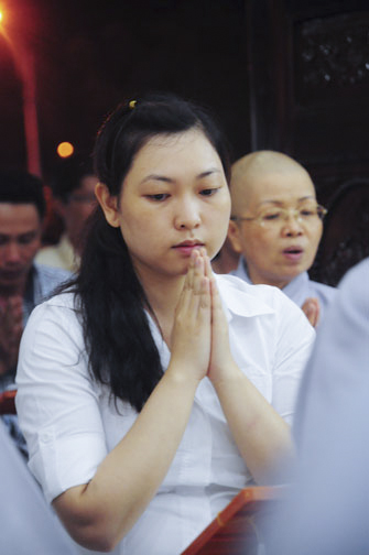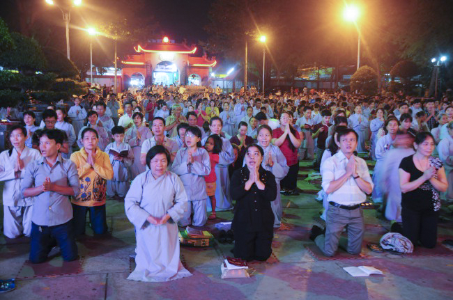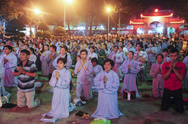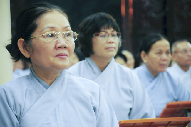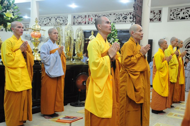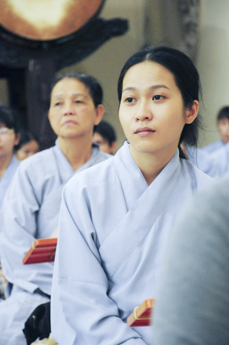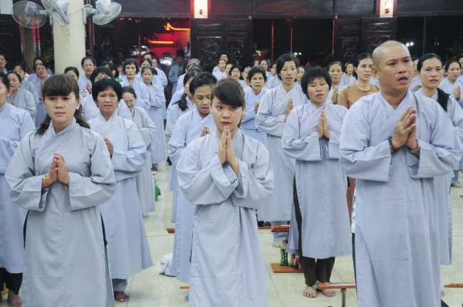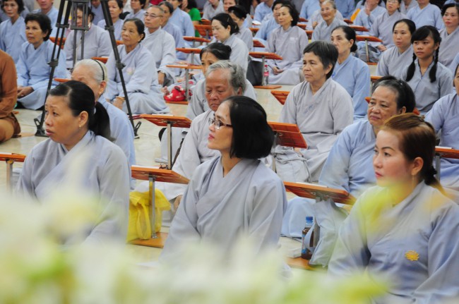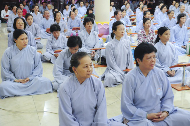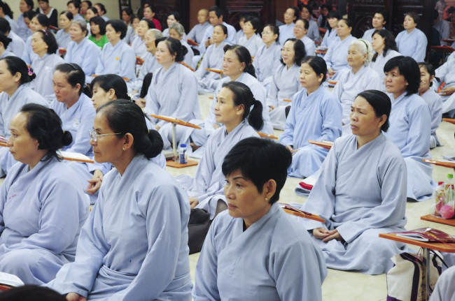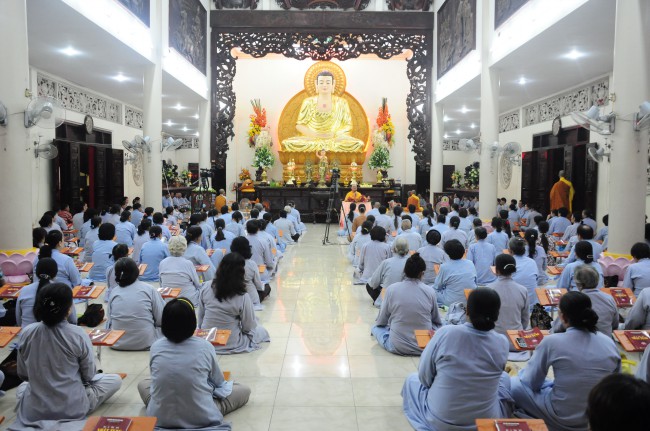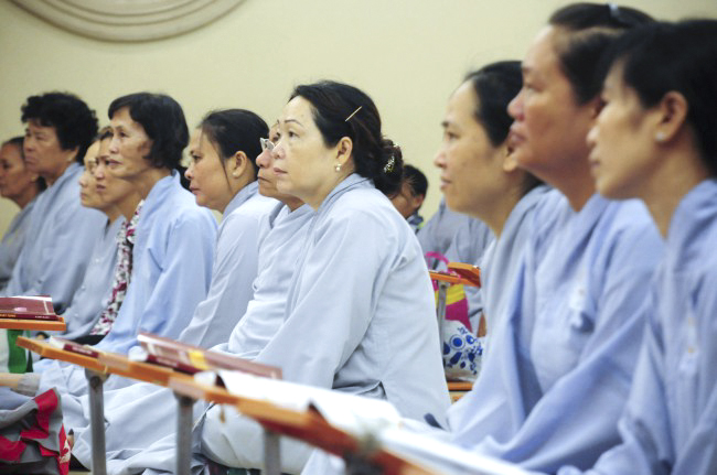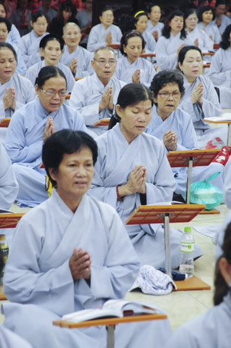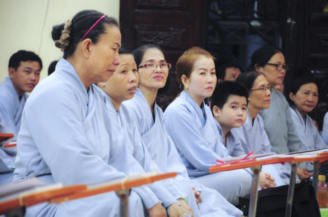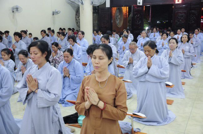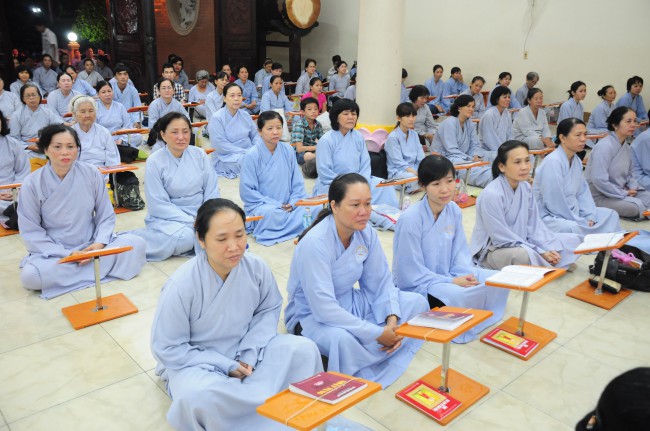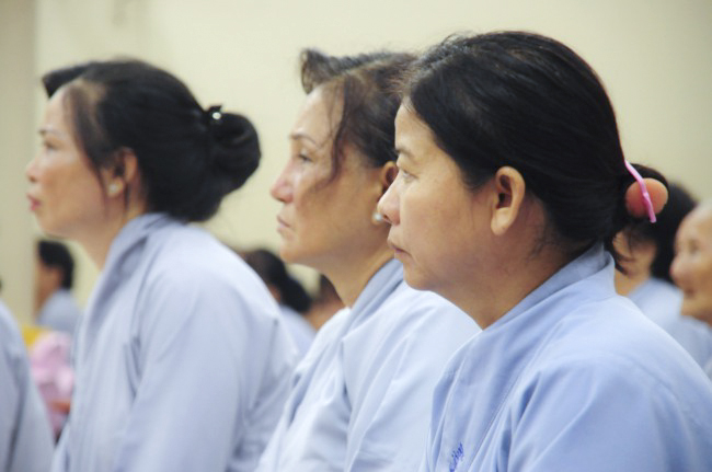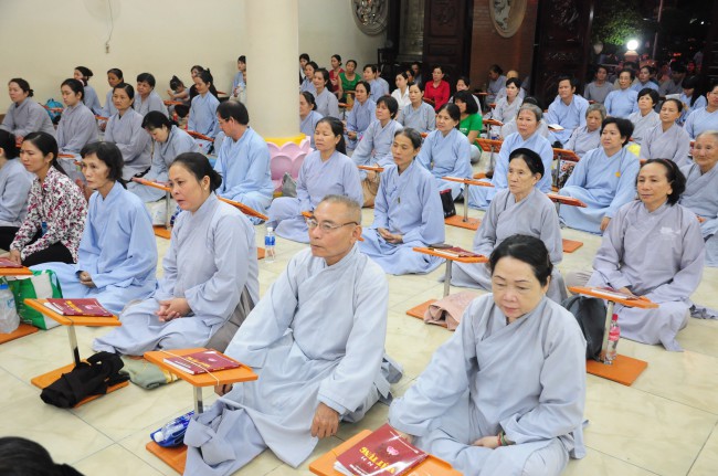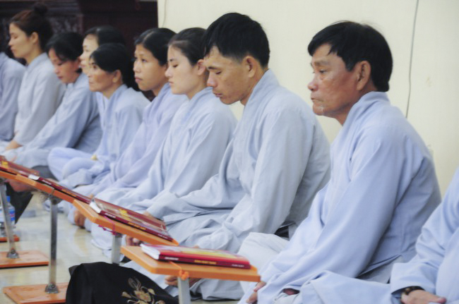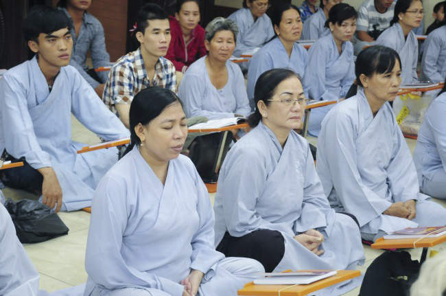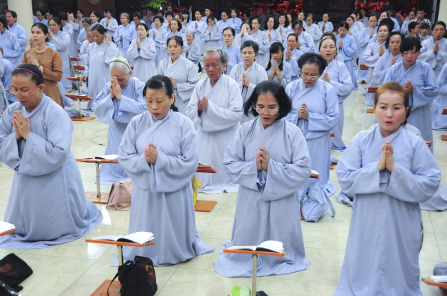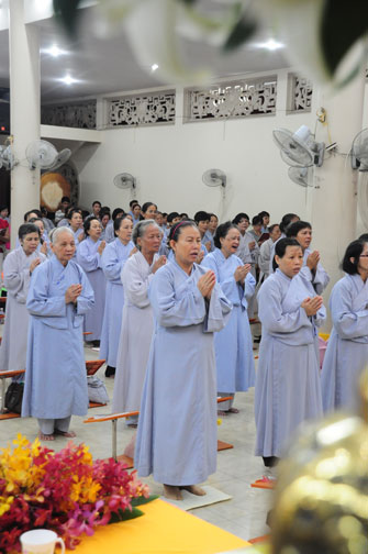 Kết thúc thời pháp thoại, đại chúng bước vào nghi thức sám hối và đọc tụng giới pháp của người Phật tử tại gia.