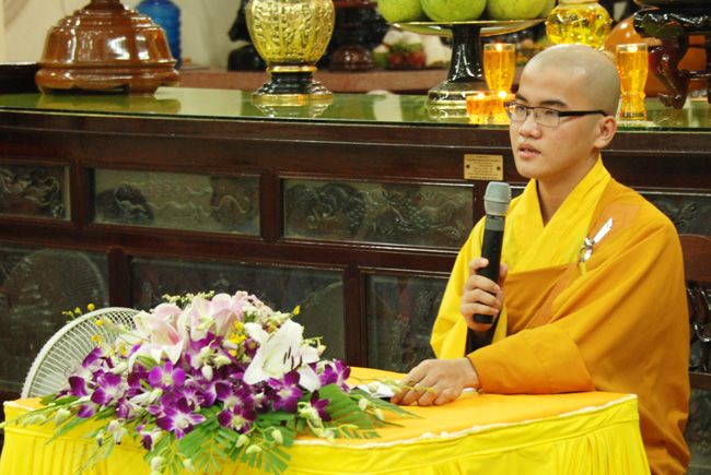 “Nhận diện Ta-bà để sống an lạc” là chủ đề thời pháp thoại trước khi lễ lạy sám hối. Trong thời pháp, Thầy Thích Tâm Tiến đã chỉ rõ Ta-bà chính là năm thứ ô uế gồm: kiếp trược - sự giảm tuổi thọ; kiến trược – cái thấy biết sai lầm, thiên lệch; chúng sanh trược – chấp thân mạng là thật có; phiền não trược – mê lầm, phiền muộn do tham sân si; và mạng trược – thân mạng gây tạo nhiều tội nghiệp. Qua trình bày, Thầy nhấn mạnh điều đáng lưu tâm đó là chính chúng ta đang trôi trược, đang sống trong cõi uế độ đó. Vì vậy, điều hay nhất mỗi người có thể làm đó là nhận diện những khổ đau gây luân hồi, khổ não mà “Ngũ trược” gây ra, để từ đó kiên tâm, bền chí, kham nhẫn tiến tu theo đạo giải thoát mà đức Phật đã chỉ dạy. Có như vậy, đời sống chúng ta mới dần thoát khổ não, có được an lạc ở hiện đời và vị lai.