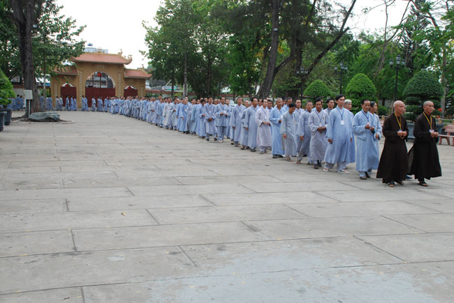 Một hình ảnh khó thấy trong xã hội hiện nay, đó là từng dòng người xếp hàng ngay ngắn, từng bước thảnh thơi, kinh hành niệm Phật dưới sự hướng dẫn của quý Thầy. Hình ảnh ấy như chấn động mạnh vào tâm thức của mỗi người, đưa con người trở về với thực tại và qúa xa lạ với những con người luôn đeo đuổi những thứ phù vân. Như hòa mình vào câu Phật hiệu, từng người, từng người bước đi trong chánh niệm thảnh thơi. Sự kinh hành niệm Phật giúp mỗi hành giả phát triển tính giác, điều phục vọng tưởng và nhất là hướng đến nhất tâm bất loạn. Giữa xã hội với vô vàn loạn động như hiện tại, ít nơi đâu ta có thể bắt gặp sự thảnh thơi và an lạc đã và đang hiện diện với những hành giả nơi đây.