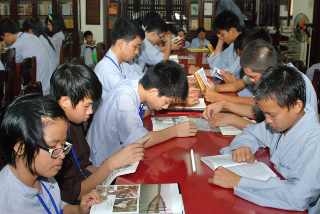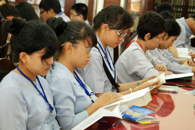 Các em đọc kinh sách trong những lúc rảnh: