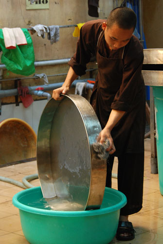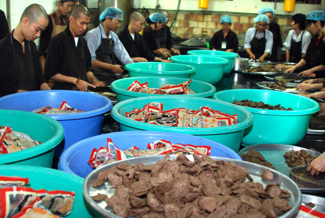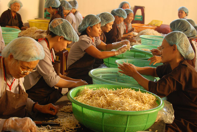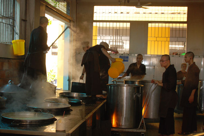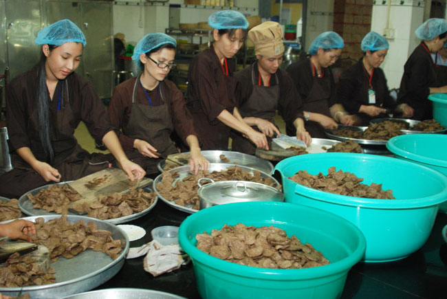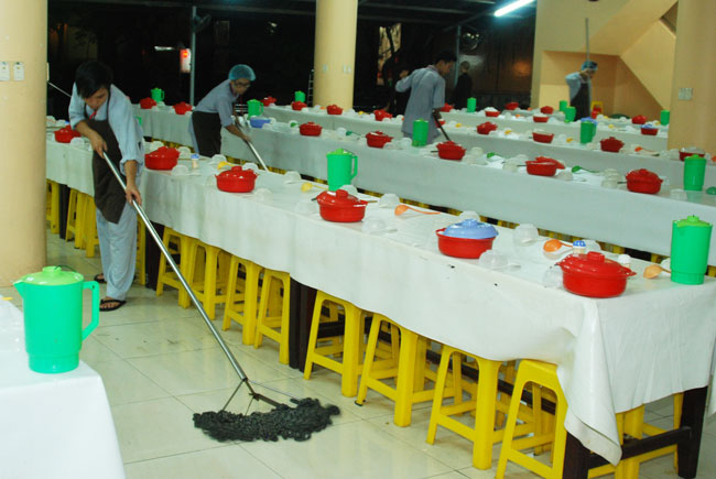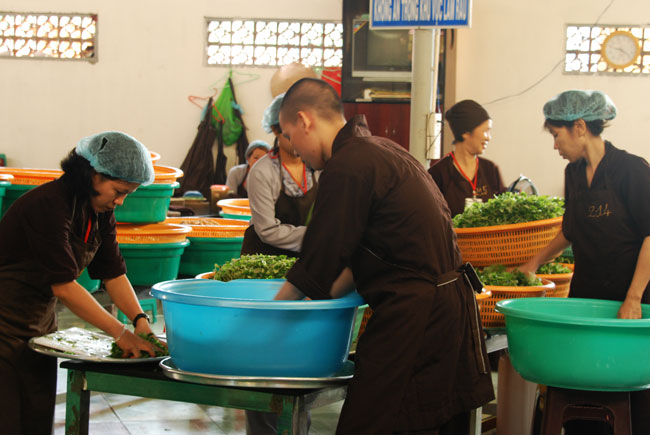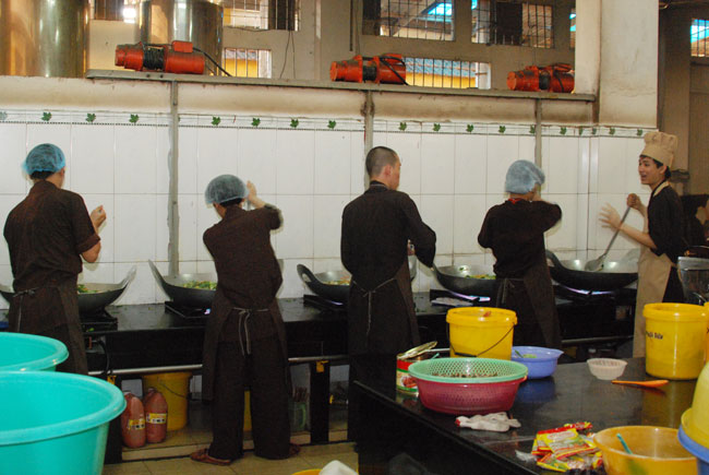 Đội ngũ nhà bếp phục vụ các em trong những ngày tu học: