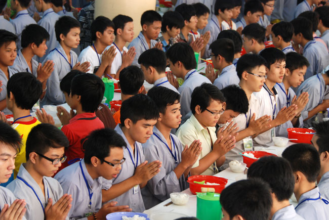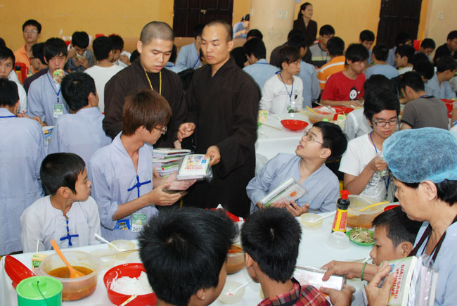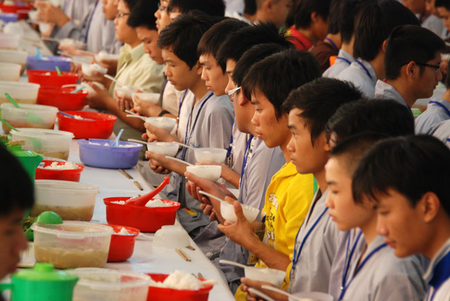 Hình ảnh các bạn trẻ trong giờ dùng cơm: