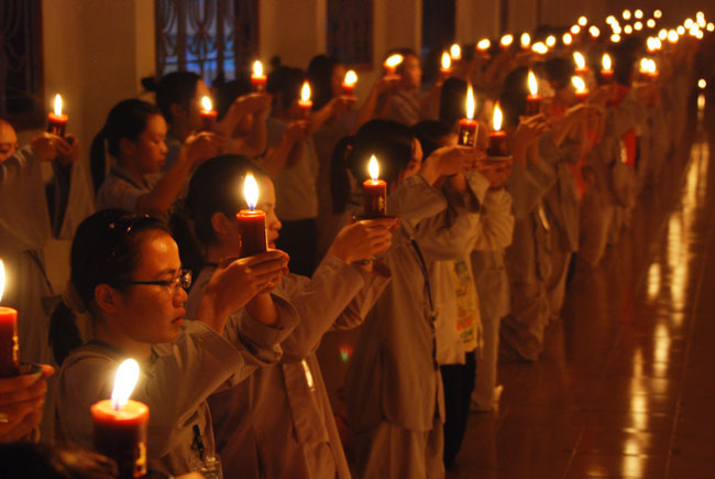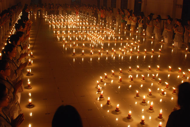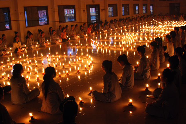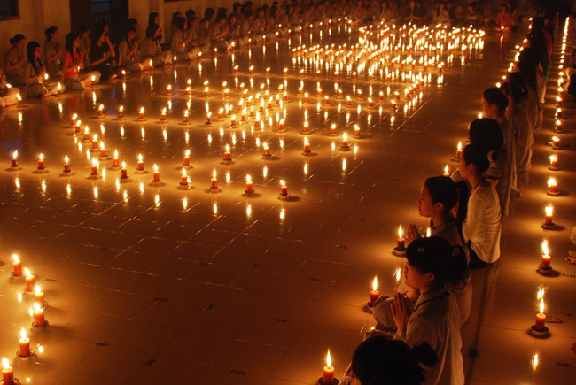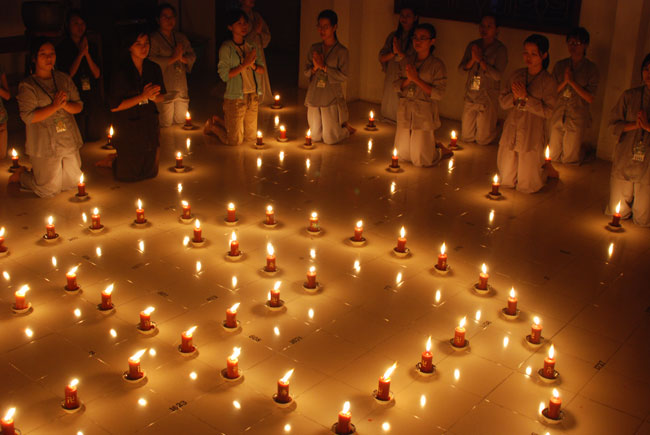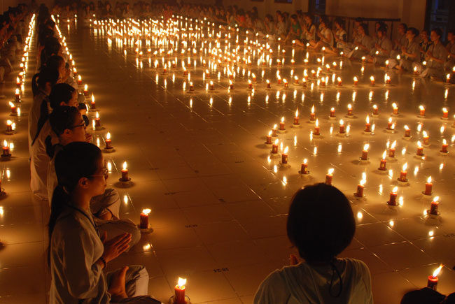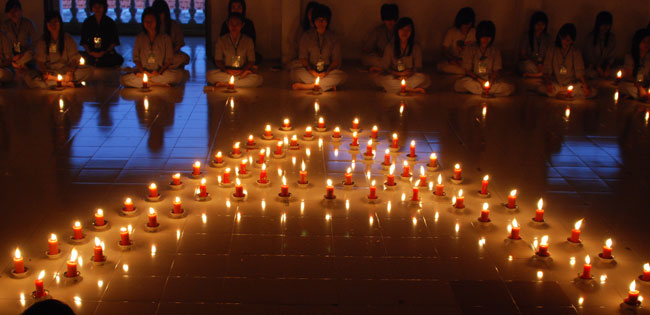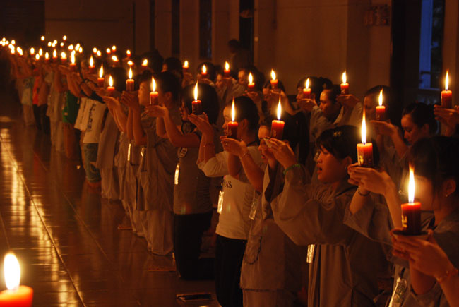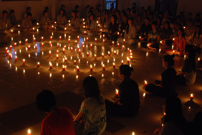 Đốt nến cầu nguyện quốc thới dân an tại giảng đường khu A:
