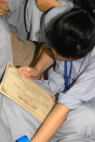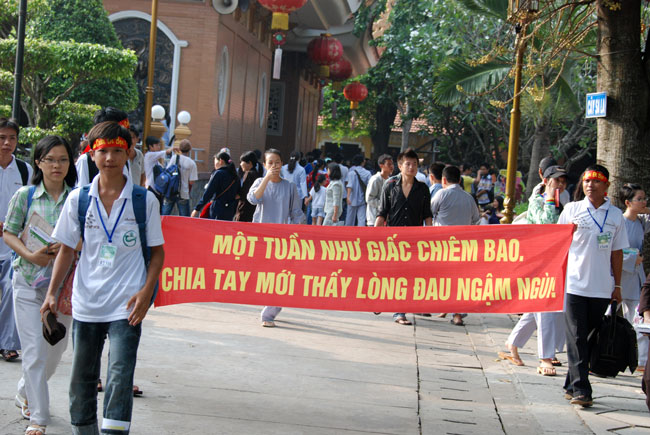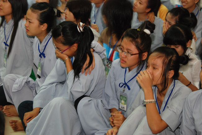 Vậy là 7 ngày thực sự đã trôi qua, 7 ngày tu tập để sống và hành theo lời Phật dạy, cũng như trở về với chính con người thật của mình đã thực sự qua. Sẽ không như những xúc cảm hiện giờ, thoáng chút vui, thoáng chút buồn và rồi có khi bị lãng quên đặt vào góc khuất đâu đó trong tâm hồn, mà có lẽ, những trải nghiệm trong 7 ngày sống độc lập, sẽ giúp các em trong suốt những năm tháng sau này. Vì chúng là những bài học ý nghĩa nhất, giúp các em hiểu hơn những giá trị nhân văn mà mình đang có. Đấy không chỉ đơn thuần là những giá trị phương Đông, những tố chất của người con Việt, mà đó còn là tinh thần của người con Phật. Ngày mai thôi, các em sẽ xa tiếng chuông chùa, xa thầy, xa bạn…nhưng tất cả có lẽ đã được lưu giữ ở miền kí ức. Để rồi, giờ đây sân chùa chỉ là hình ảnh luyến lưu của tuổi trẻ: là nét rạng rỡ vui mừng trên môi thoáng hiện rồi lại buồn…. Mỗi người một tâm trạng, mỗi bạn một nỗi niềm, chung quy tất cả đều luyến lưu…! Chia tay bạn năm nay, biết khóa sau chúng ta có còn gặp lại hay không! Vài dòng chữ viết vội như một lời nhắn gởi lưu bút chuyền tay, vài món quà nhỏ nhoi tặng nhau như nhớ hoài 7 ngày đong đầy kỷ niệm, các bạn trở lại gia đình, trở về với cuộc sống đời thường, hi vọng rằng, cùng với những lời dạy của Phật, các em sẽ biết ứng dụng và có một cuộc sống lành mạnh và an lành.
