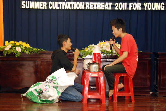 Trước khi ra về, vào chiều ngày 20/7, bằng tất cả tấm lòng với con trẻ, TT. Thích Chân Tính – Trưởng Ban Tổ chức khóa tu – đã ân cần nhắc nhở, động viên các em phải cố gắng học hành, sống đời đạo đức. Thượng tọa ôn lại những gì các em đã tu học được trong 7 ngày qua, sách tấn các em khi về nhà phải luôn thực tập, hầu thể nghiệm phần nào chút lợi lạc thiết thực; có thể nhờ đó làm cha mẹ, thầy cô và các bạn khác vui lòng.