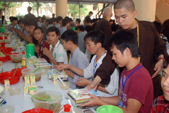 Về với mái ấm gia đình, các bạn trẻ được Ban tổ chức gởi tặng sách: “Mặt trời của con”, “Giàu sang và vui vẻ”, “Kinh trường thọ diệt tội”, “Ăn chay sát sinh và quả báo”, “Đệ tử quy”, “Nhân quả ba đời”. Băng đĩa: DVD “Dhammakaya ấn tượng khó phai”, “Một ngày qua”, VCD “Ánh sáng Phật pháp kỳ 30”, “Tâm hồn cao thượng”, “Vượt qua chính mình”, “Khóa tu mùa hè đợt 2 năm 2011”. Đặc biệt, phần quà giá trị hơn hết đó chính là chứng điệp Quy Y Tam Bảo. Một món quà ý nghĩa được các bạn trẻ đồng loạt đăng ký đón nhận và được Thượng tọa trụ trì quang lâm làm thầy bổn sư cho các em. Trong buổi lễ quy y Tam bảo, các em được Thầy chỉ dạy rất kỹ về ý nghĩa của việc quy y, về ba ngôi Tam bảo, Phật, Pháp, Tăng. Đây là món quà sẽ thay quý thầy, quý cô chăm sóc cho các em khi các em trở về với đời sống thường nhật.