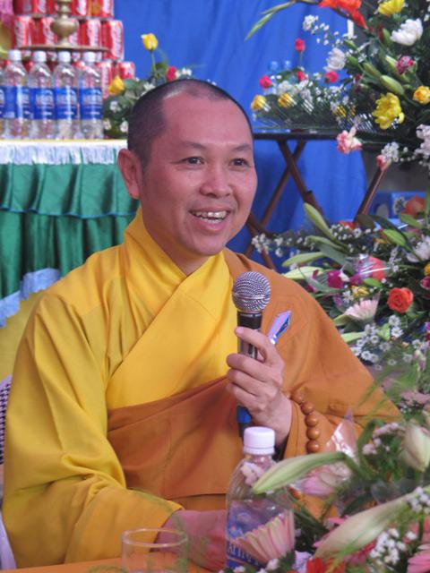 Tại đây, Thượng tọa đã có buổi thuyết giảng về “ý nghĩa chữ tu”. Thượng tọa đã nhấn mạnh Tu là sửa và ai cũng phải tu chứ không phải chỉ có quý thầy, quý sư cô ở chùa cạo tóc mới gọi là Tu. Nhưng sửa như thế nào? Là sửa xấu thành đẹp, dở thành hay, sai thành đúng, mê thành trí… giúp cho quý Phật tử thấy được lợi ích của chữ Tu. Có hiểu được như vậy mới chuyển hóa những thói hư tật xấu, những suy nghĩ tiêu cực trong cuộc sống. Lúc chưa tu thì những nghiệp chướng khó bỏ như “ ăn quen khó nhịn” nhưng biết tu rồi thì phải bỏ từ từ vì “nhịn hoài cũng quen”. Chính vì vậy không chỉ riêng ai mà tất cả mọi người đều phải biết tu, để chuyển hóa tâm tham, sân, si thực hành hạnh từ bi, nhẫn nhục… như vậy mới thực sự đem lại lợi ích cho bản thân, gia đình và xã hội. Cuối buổi giảng, thầy đã tặng hơn 300 phần quà cho toàn thể đạo tràng.
