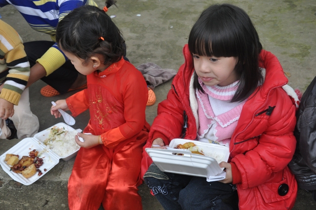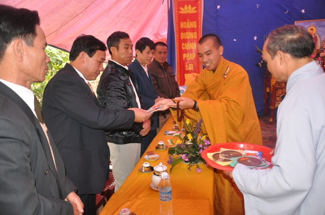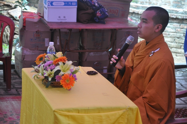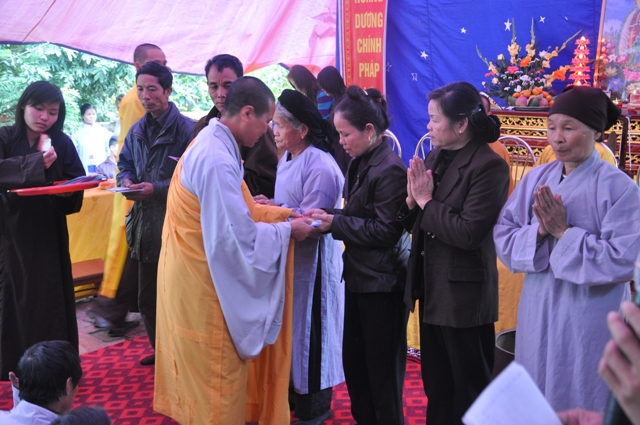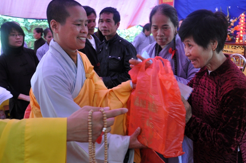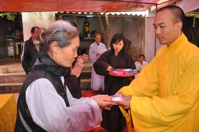 Chiều cùng ngày là phần tặng quà cho các chúng trưởng đạo tràng đã tích cực trong công tác hỗ trợ thành lập và hướng dẫn đạo tràng tu tập. Mặc dù Chùa đang trong quá trình trùng tu, điều kiện của Chùa còn rất nhiều khó khăn, cần sự hỗ trợ của thập phương tín thí gần xa. Nhưng Thầy trụ trì đã vận động được 50 phần quà bao gồm tịnh tài, tịnh vật để tặng cho các hộ gia đình có hoàn cảnh khó khăn trong thôn.