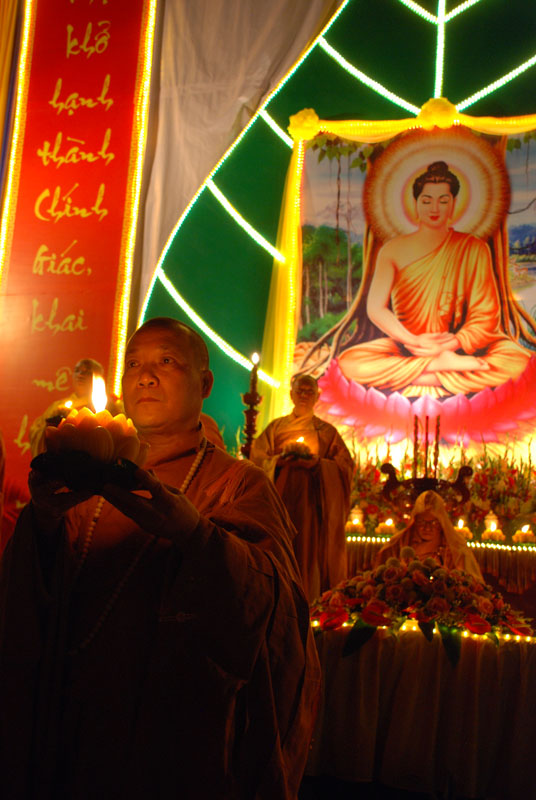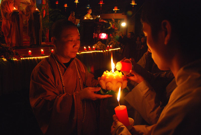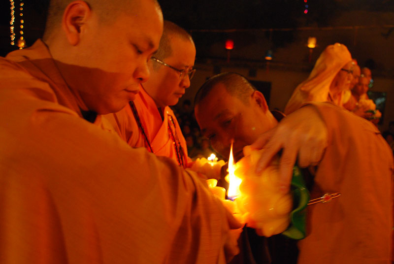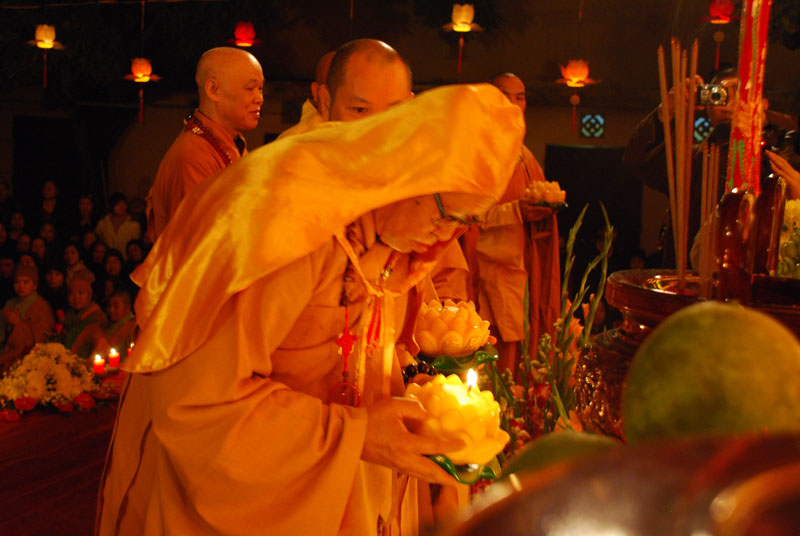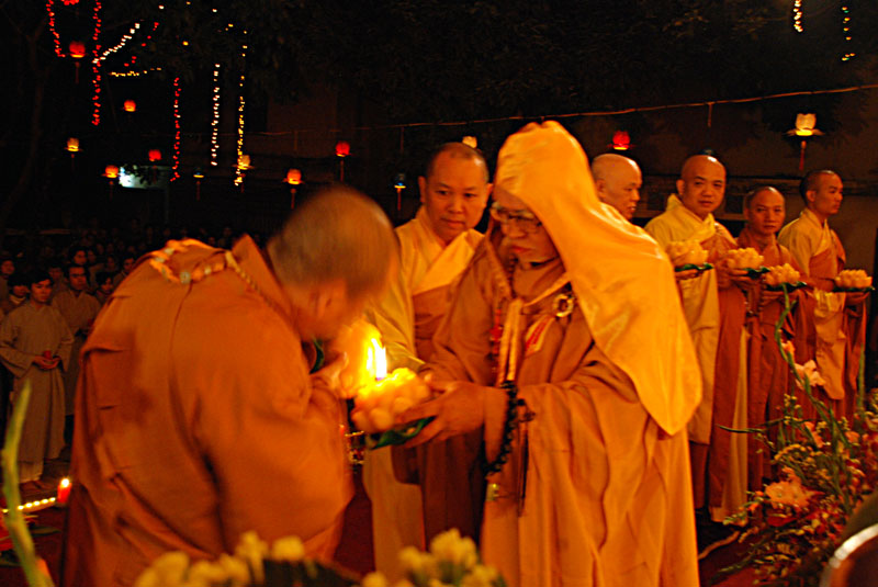 Tiếp theo chương trình là phần dâng hương của chư tôn đức chứng minh. Trong nhạc điệu thiêng liêng, giây phút được đợi chờ nhất, ấn tượng nhất của đêm hội là nghi thức truyền đăng bắtđầu từnơi tôn ảnh Phật Thích Ca Mâu Ni. Ánh sáng lung linh từ ngọn nến trên bàn thờ Phật đượcHòa thượng Thích Trí Tịnhtruyền cho Thượng tọaThích Bảo Nghiêm, sauđóđược lan tỏa đến chư tôn đức và hàng Phật tử như ánh sáng của trí tuệ, chiếu soi vào dòng đời, phá tan màn vô minh si ám, thắp sáng niềm tin và sự hy vọng. Và từ ngọn nến được truyền đầu tiên ấy, ánh sáng cứ tiếp tục truyền đi, một vùng sáng đã dần dần lan tỏa.