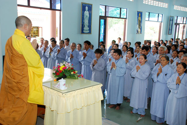Trong buổi thuyết giảng, Thượng tọa tán thán tinh thần hoằng pháp của Đại đức trụ trì đồng thời tán thán tinh thần tu học của quý Phật tử. Mặc dù nơi đây là vùng sâu vùng xa, cuộc sống Phật tử còn nhiều khó khăn về kinh tế nhưng mỗi tháng vẫn thường xuyên đến chùa tu tập. Thượng tọa mong rằng Phật tử sẽ luôn luôn giữ vững tâm đạo, nhất là tinh tấn nghiên cứu kinh sách Phật hoặc nghe những bài giảng của quý thầy để nắm vững căn bản Phật học làm nền tảng trên bước đường giải thoát của mình.