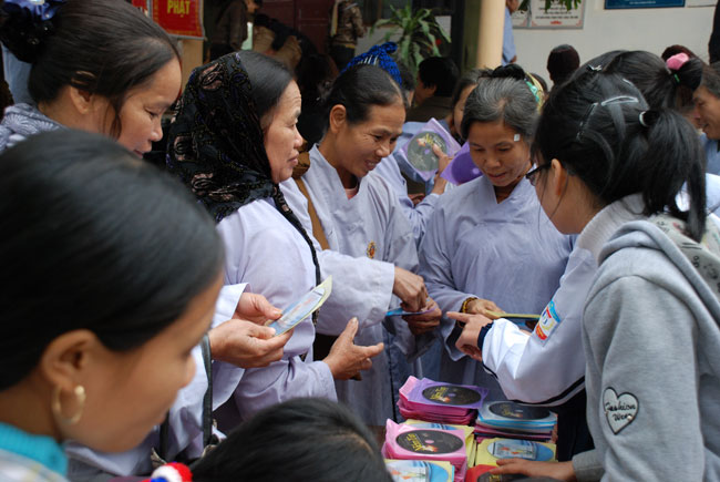 Buổi lễ kết thúc vào lúc 21 giờ 30, chùa Hoằng Pháp và chùa Diên Quang đã gởi tặng khoảng 6000 đĩa pháp bảo “Phật pháp nhiệm mầu kỳ 27, Cảm ơn vô thường, Thắp sáng niềm tin kỳ 6” cho Phật tử.