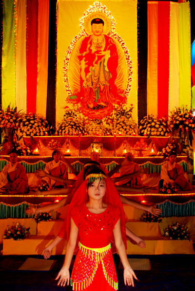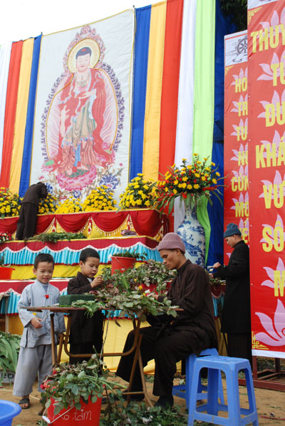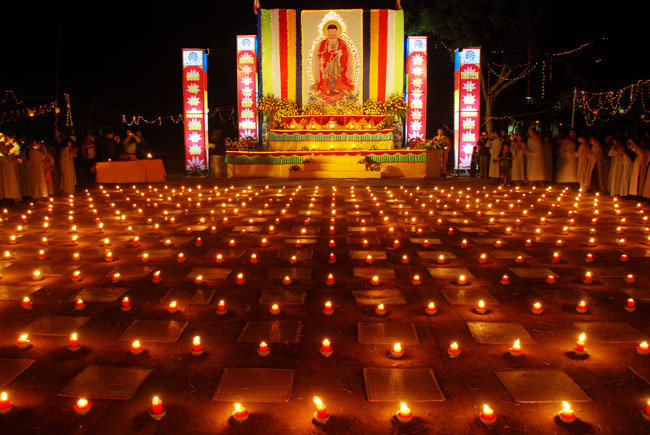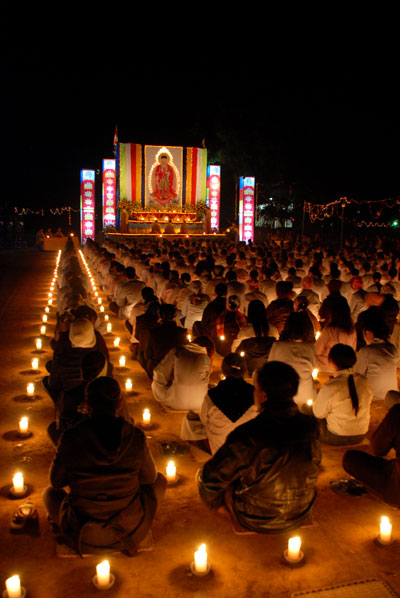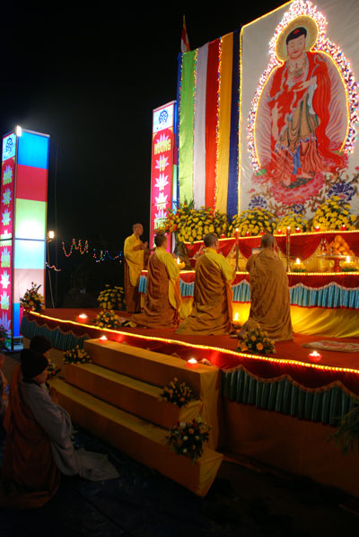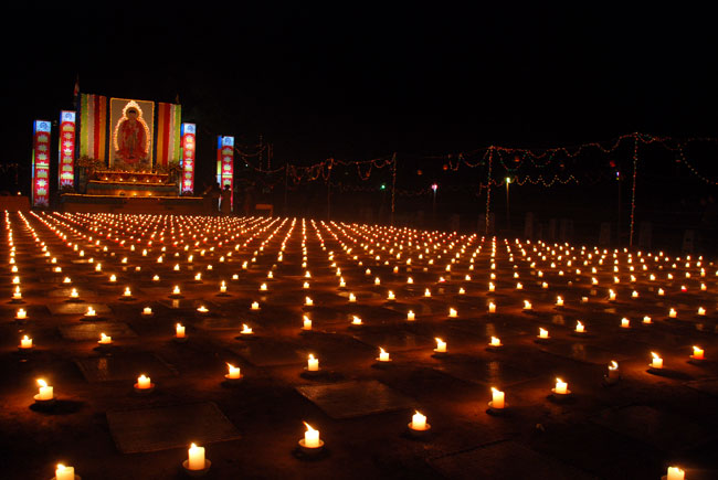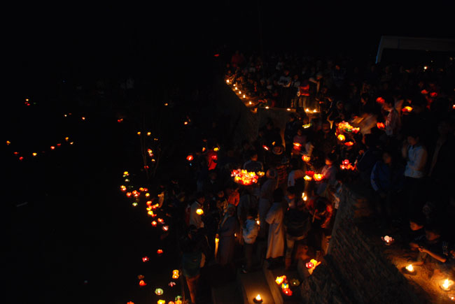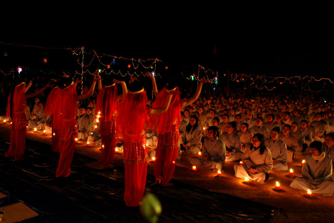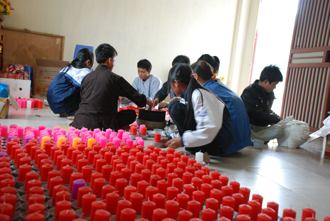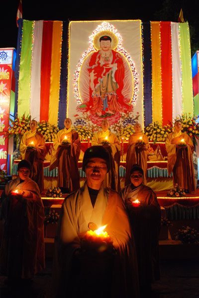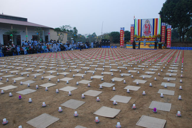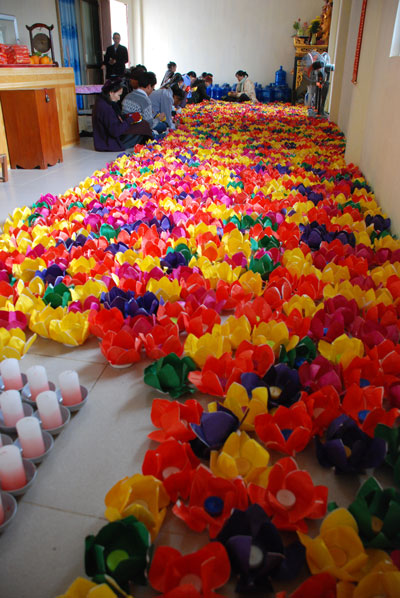 Hình ảnh ghi nhận công việc chuẩn bị và buổi lễ hoa đăng vía Phật A Di Đà: