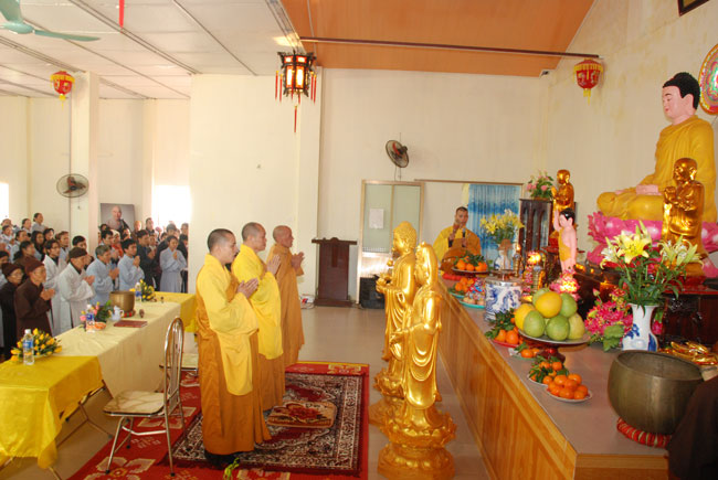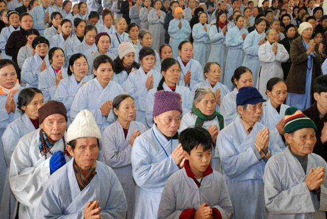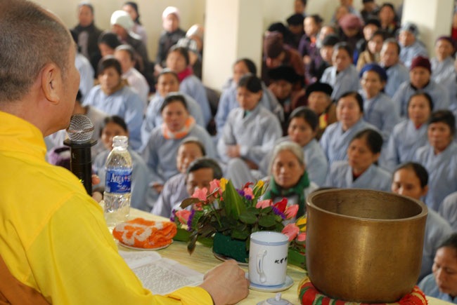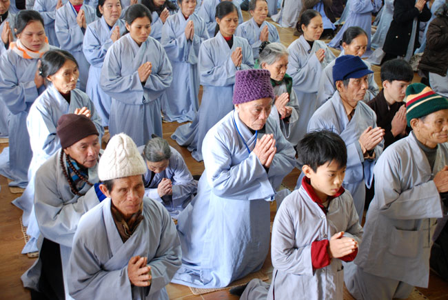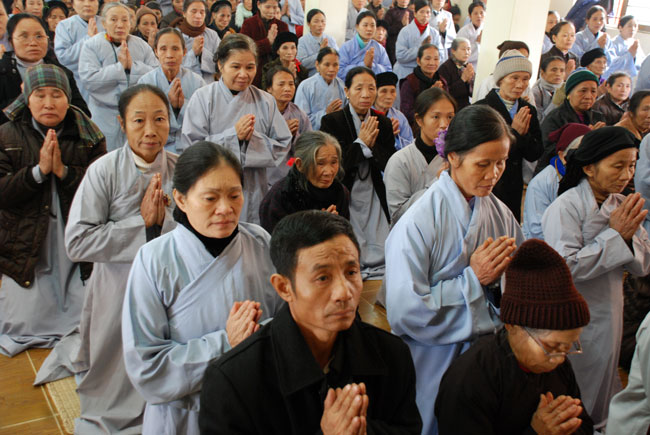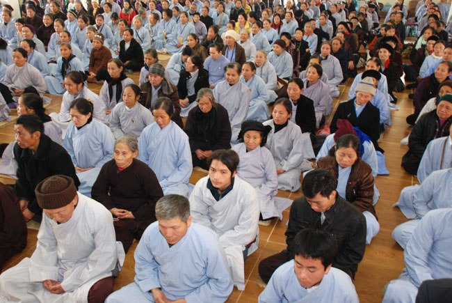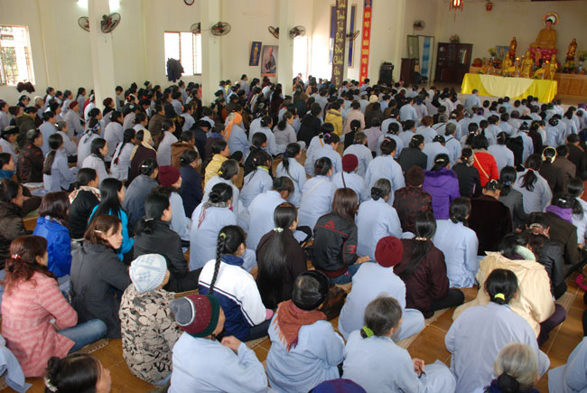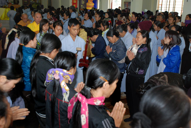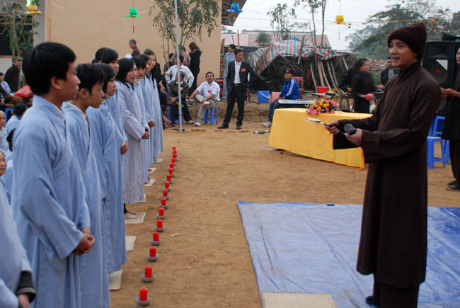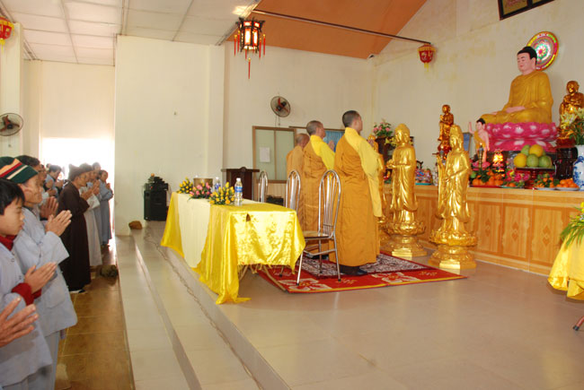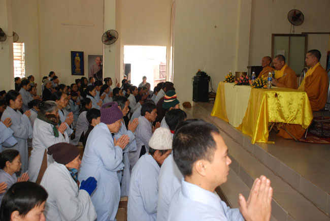 Hôm nay cũng là ngày tu niệm Phật được tổ chức định kỳ hàng tháng. Buổi sáng, chùa tổ chức lễ truyền thọ Tam quy ngũ giới. Trước khi vào buổi lễ, Thượng tọa Thích Chân Tính đã giải thích rất kỹ về ý nghĩa tam quy và ngũ giới, đồng thời lặp đi lặp lại nhiều lần để giới tử thuộc lòng. Sau phần truyền thọ quy giới Thượng tọa còn hướng dẫn oai nghi cần thiết của người Phật tử. Kết thúc buổi lễ quy y ai cũng hiểu rõ mục đích ý nghĩa quy y Tam bảo và 5 giới cấm.